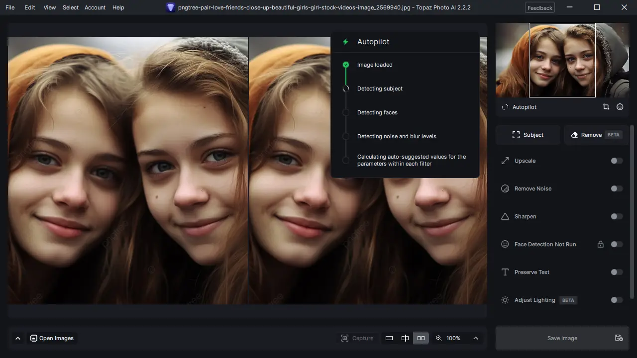 Topaz Photo AI — это программное обеспечение для автоматической обработки изображений с использованием технологий искусственного интеллекта, объединяющее функции устранения шума, повышения резкости и увеличения разрешения. Программа подходит как для профессиональных фотографов, так и для любителей, стремящихся улучшить качество снимков без сложных настроек. Благодаря встроенному автопилоту и интуитивному интерфейсу, редактирование становится быстрым и эффективным.