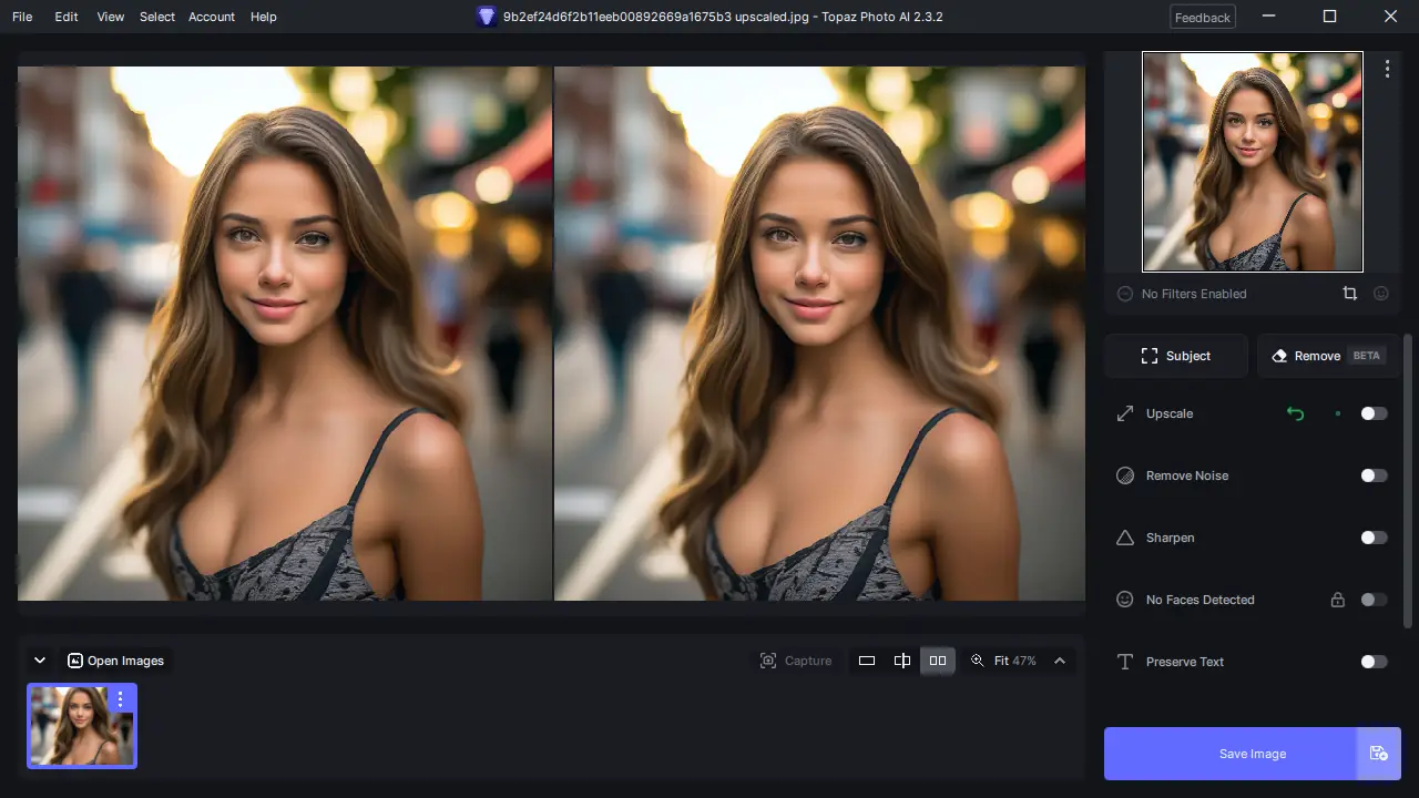 Topaz Photo AI демонстрирует высокую эффективность при обработке фотографий, особенно в сложных условиях съёмки, таких как недостаток света или использование длинных выдержек. Программа способна восстанавливать детали, которые традиционные методы редактирования часто теряют, благодаря глубокому обучению на массивах изображений. Однако, несмотря на все преимущества, у неё есть и ограничения, связанные с аппаратными требованиями и языковой поддержкой.