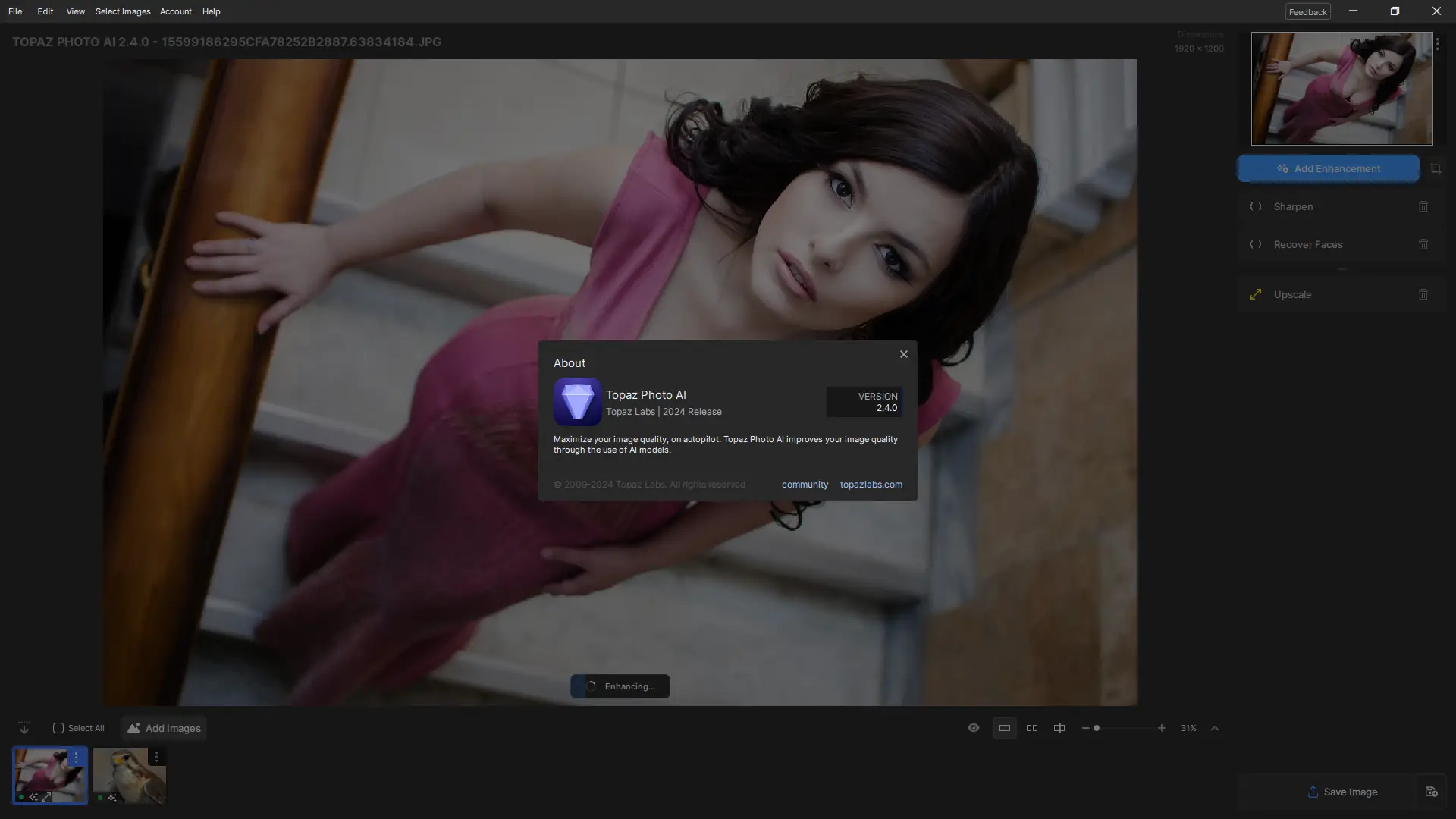 Topaz Photo AI — это программное обеспечение для автоматического улучшения фотографий с использованием технологий искусственного интеллекта. Приложение объединяет функции шумоподавления, повышения резкости и масштабирования изображений в едином интерфейсе. Программа подходит как для профессиональных фотографов, так и для любителей, стремящихся получить качественные снимки без сложной ручной обработки.