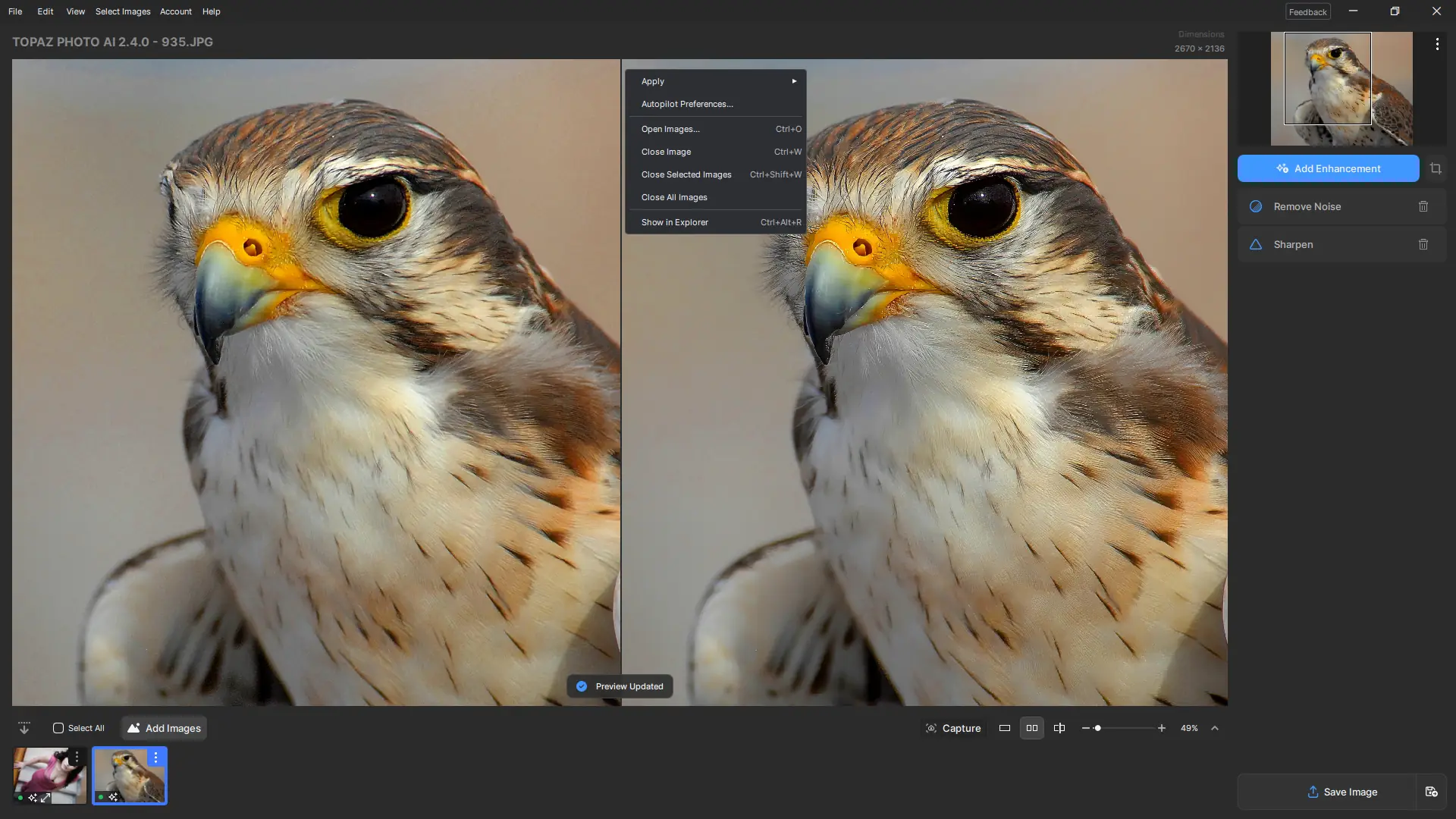 Работа с программой начинается с загрузки изображения через интерфейс или прямую интеграцию с графическими редакторами. После импорта Topaz Photo AI автоматически сканирует снимок, определяя наличие шума, размытости или необходимости увеличения. Пользователь может полагаться на режим Autopilot, который сам подберёт оптимальные настройки, либо вручную регулировать интенсивность каждого эффекта. После завершения обработки изображение можно сохранить в исходном или новом формате, а также экспортировать обратно в основной редактор для дальнейшей цветокоррекции.
