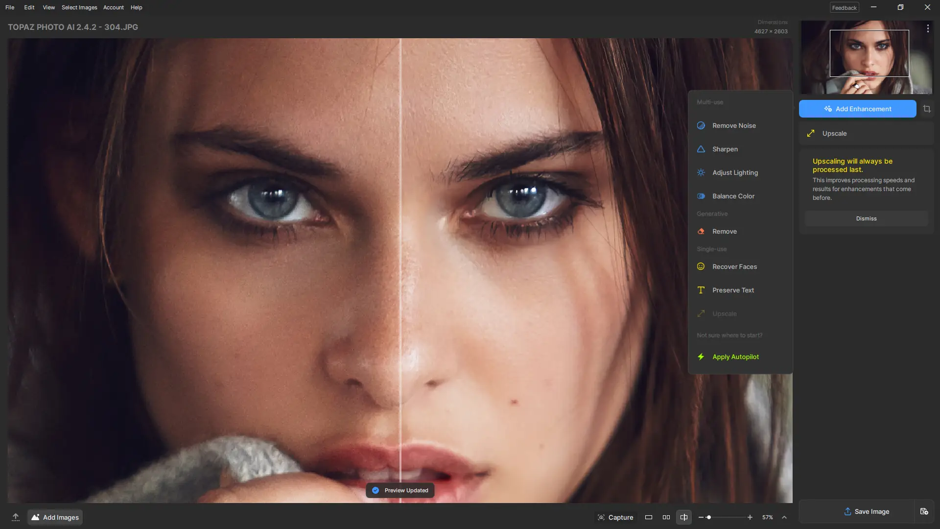 Topaz Photo AI представляет собой интегрированное приложение, разработанное для автоматизированной обработки цифровых изображений. Программа использует глубокое обучение для анализа и коррекции дефектов, таких как шум, размытость и недостаточная детализация. Благодаря комбинации алгоритмов из Denoise AI, Sharpen AI и Gigapixel AI, инструмент обеспечивает комплексное улучшение снимков в едином интерфейсе.