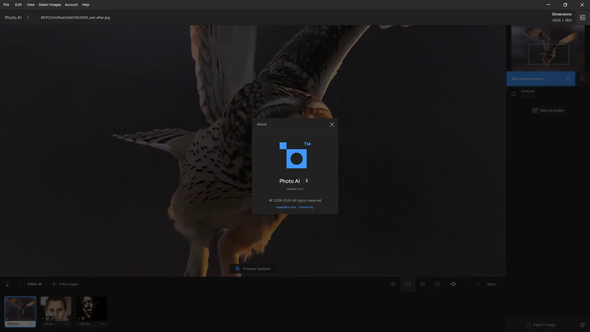 Topaz Photo AI представляет собой интегрированное решение для обработки изображений, разработанное на базе передовых алгоритмов машинного обучения. Программа сочетает в себе ключевые возможности таких продуктов, как Denoise AI, Sharpen AI и Gigapixel AI, позволяя устранять дефекты снимков и повышать их качество в едином интерфейсе. Обработка происходит с учётом контекста изображения, что обеспечивает естественный результат без артефактов.