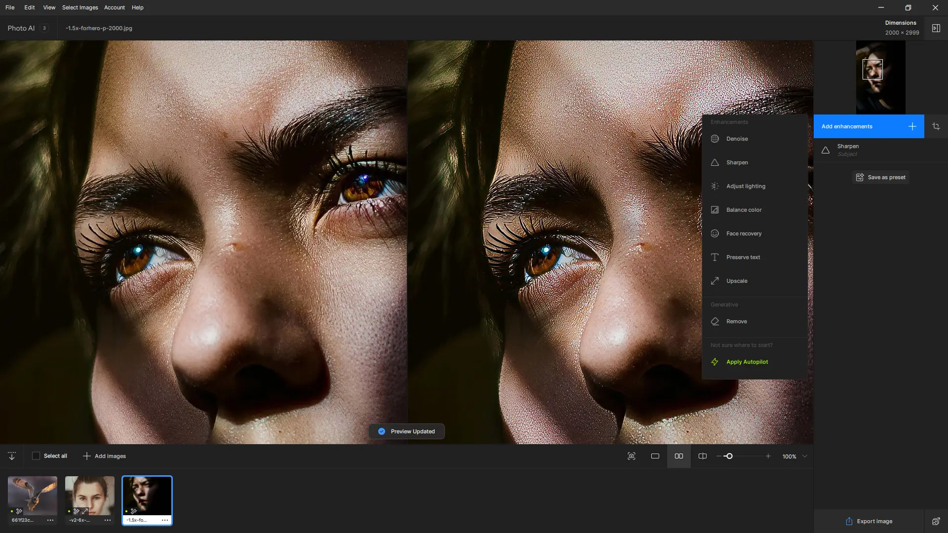 - Автоматическое исправление шума, размытости и недостаточного разрешения