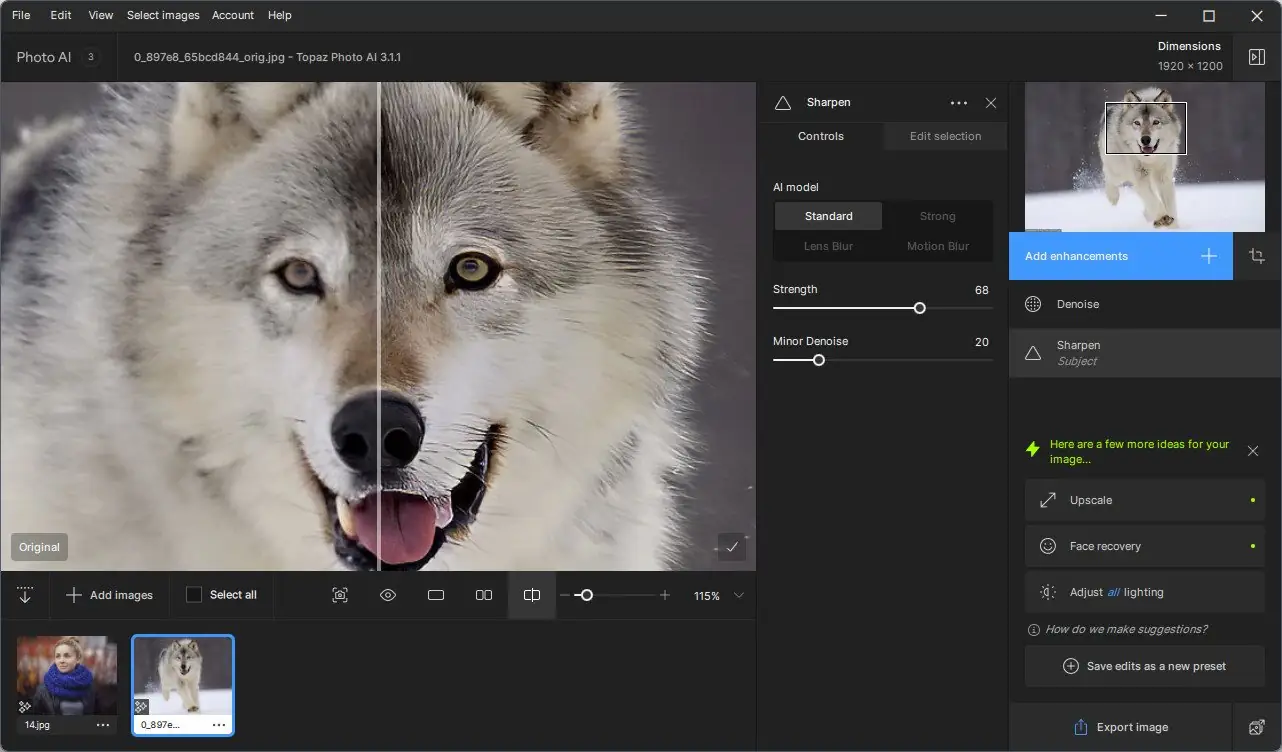 - Интеграция функций Denoise AI, Sharpen AI и Gigapixel AI в одном интерфейсе