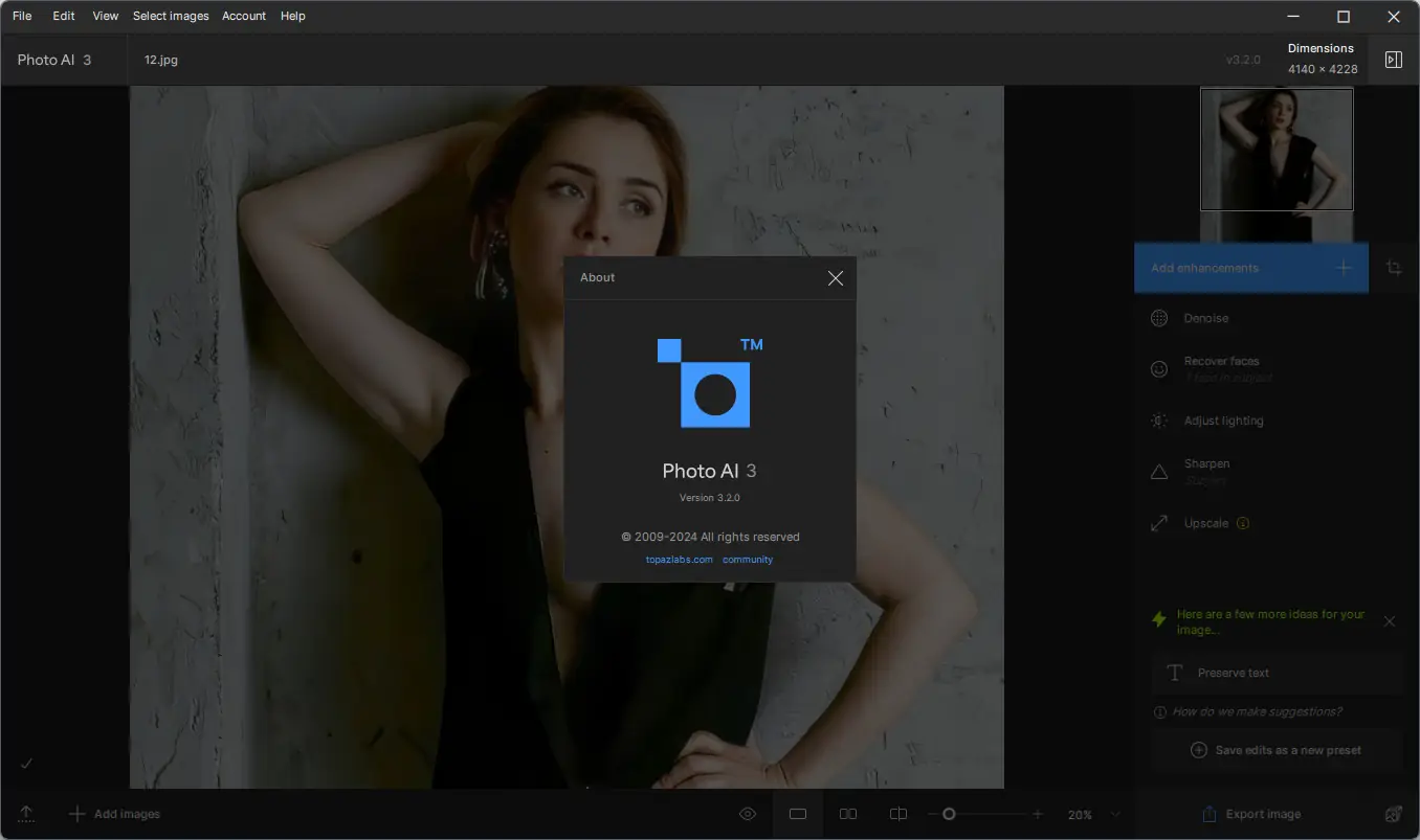 Topaz Photo AI — это программное решение для автоматической обработки фотографий с использованием технологий искусственного интеллекта. Инструмент объединяет функции устранения шума, коррекции размытости и увеличения изображений без потери качества. Программа подходит как для профессионалов, так и для начинающих фотографов, стремящихся улучшить визуальную составляющую своих снимков.