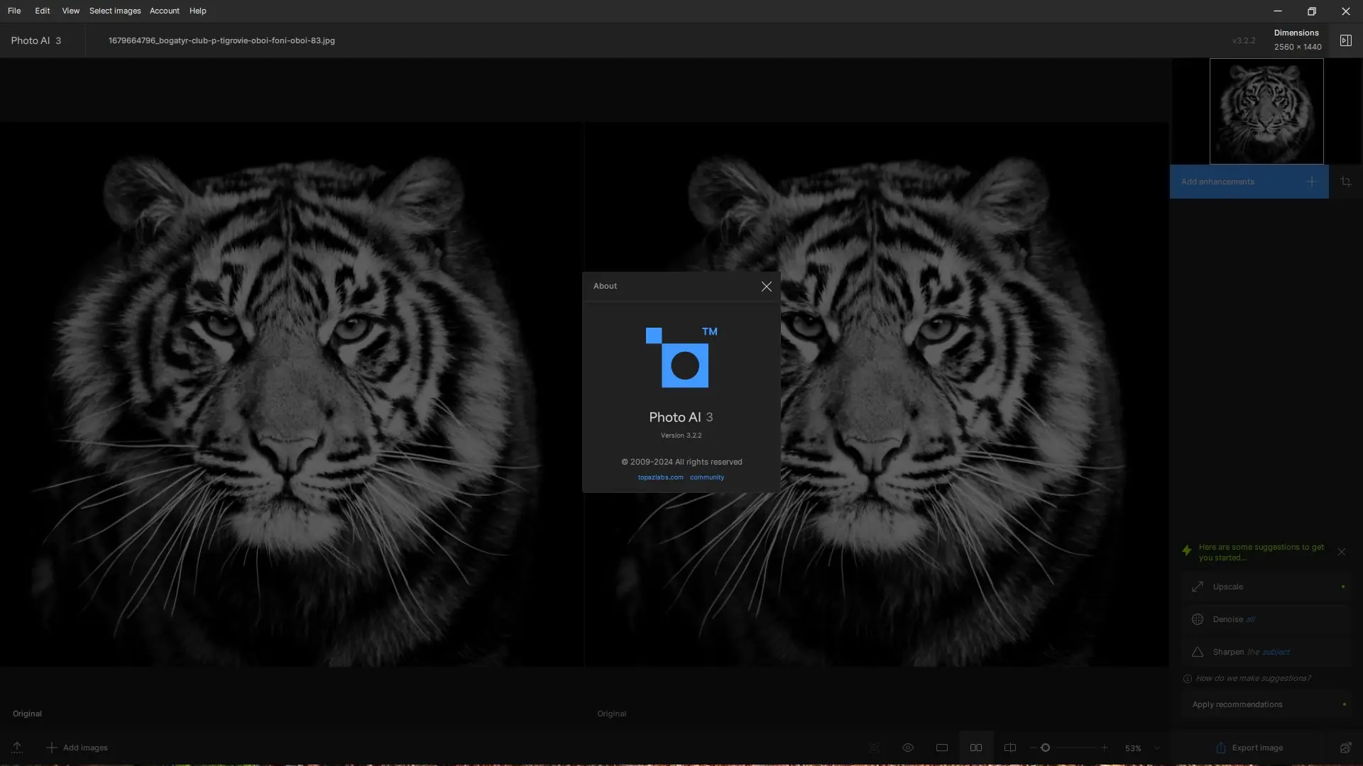 Topaz Photo AI — программное обеспечение для автоматического улучшения фотографий с использованием технологий искусственного интеллекта. Инструмент объединяет функции шумоподавления, повышения резкости и масштабирования изображений, обеспечивая высокое качество обработки. Программа подходит как для профессиональных фотографов, так и для любителей, стремящихся улучшить визуальную детализацию своих снимков.