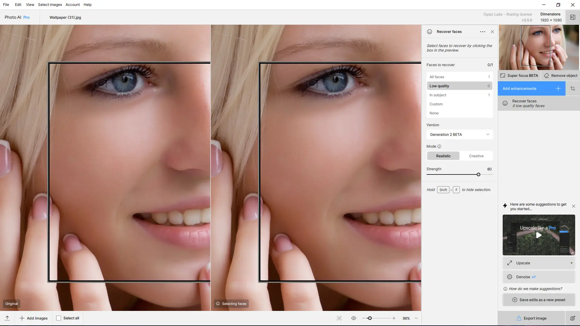 Topaz Photo AI демонстрирует высокую эффективность при обработке проблемных снимков, особенно в условиях, когда традиционные методы дают ограниченный результат. Программа способна восстанавливать детали в размытых или шумных изображениях, что особенно ценно при работе с архивными фотографиями или материалами, сделанными на мобильные устройства. Однако, как и любое ПО на базе ИИ, она требует значительных ресурсов системы для стабильной работы.