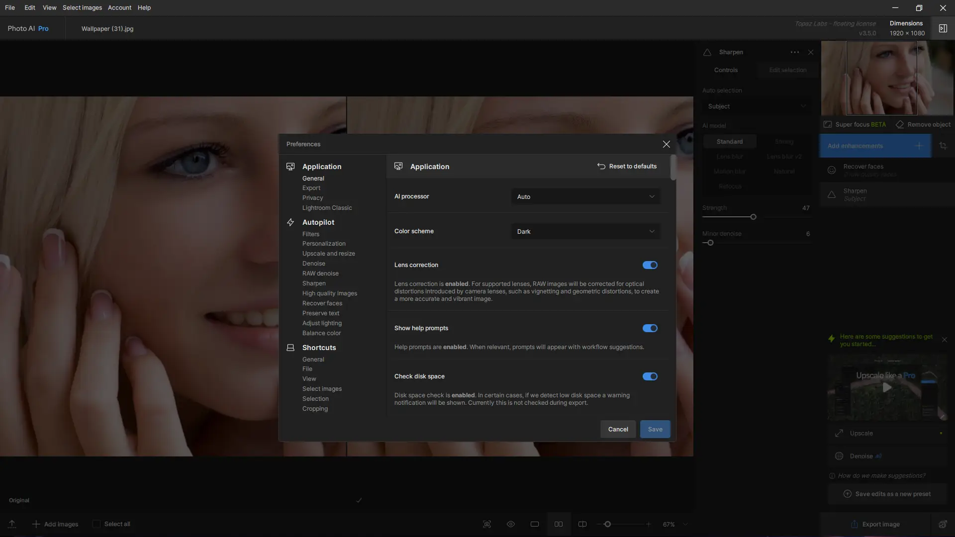 Интерфейс приложения интуитивно понятен и ориентирован на быструю обработку. После загрузки изображения программа в режиме Autopilot проводит анализ и предлагает оптимальные настройки. Пользователь может принять рекомендации или вручную скорректировать параметры шумоподавления, резкости и масштабирования. Каждый инструмент работает независимо, позволяя применять только нужные изменения. Обработка происходит в реальном времени, с возможностью сравнения «до» и «после» в разных режимах просмотра. Поддерживаются форматы JPEG, PNG, TIFF и RAW, что делает приложение универсальным для фотографов любого уровня.