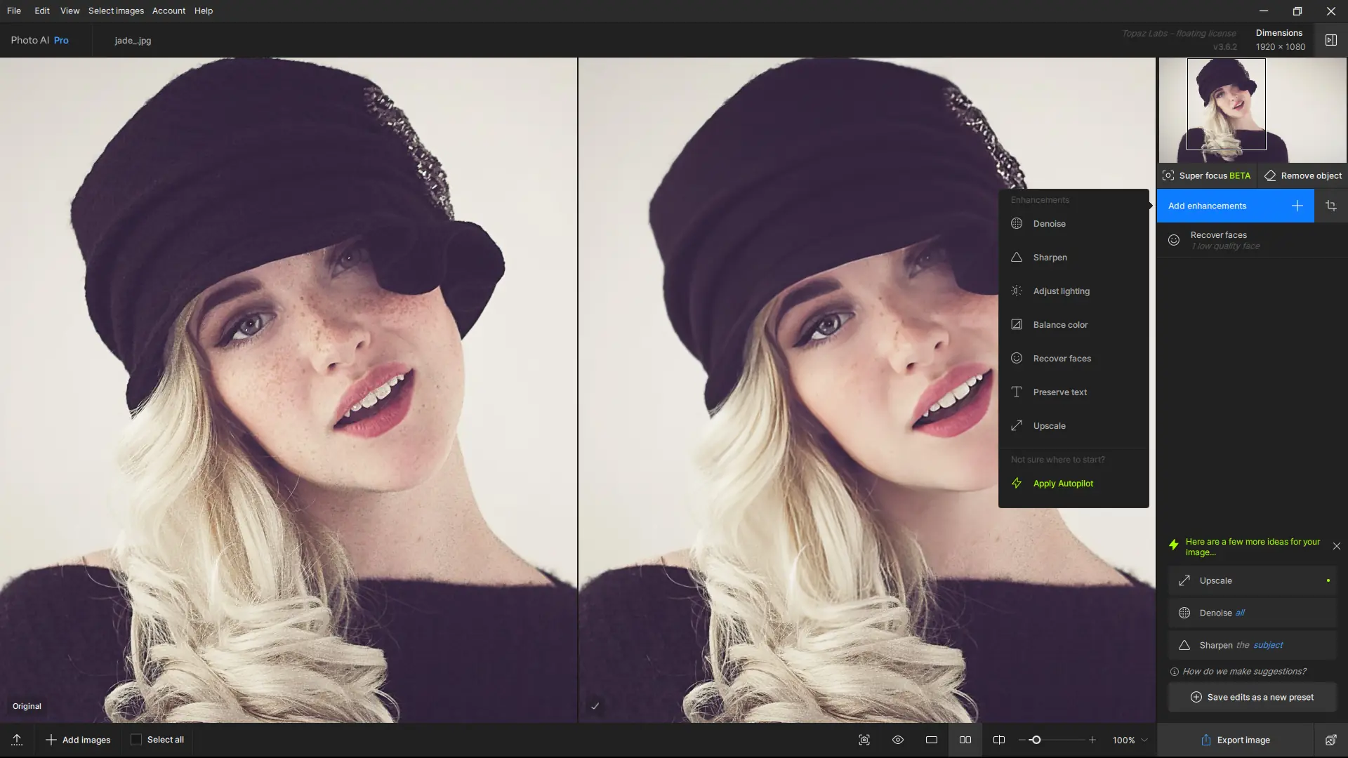 Topaz Photo AI представляет собой интегрированное решение для обработки цифровых изображений, использующее передовые алгоритмы машинного обучения. Программа автоматически анализирует загруженные фото, выявляя такие проблемы, как шум, размытость или недостаток деталей. Благодаря встроенному ИИ, она способна восстанавливать мелкие элементы, улучшать чёткость контуров и повышать общее визуальное качество.