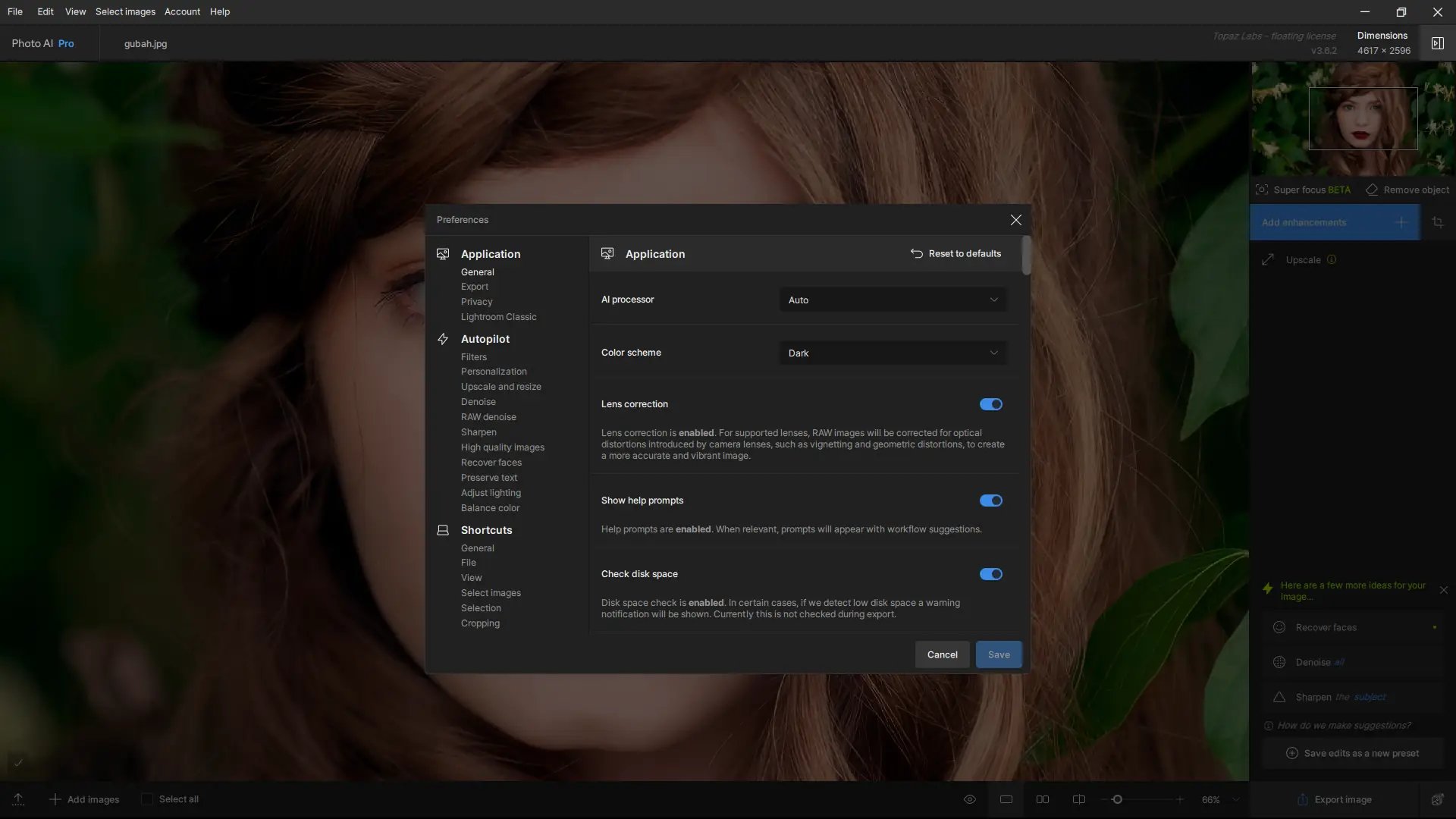 Работа с программой начинается с импорта изображения через интерфейс или перетаскиванием файла. После загрузки активируется режим Autopilot, который оценивает состояние снимка и предлагает оптимальные настройки. Пользователь может принять рекомендации или вручную отрегулировать уровень шумоподавления, резкости и масштабирования. Для групповой обработки доступна функция пакетной конвертации, что особенно полезно при работе с сериями снимков.