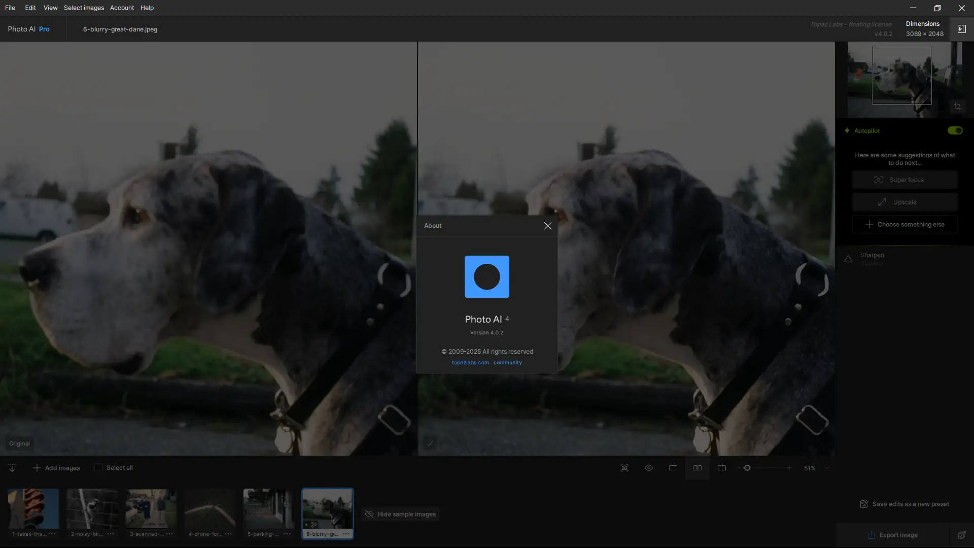 Topaz Photo AI — программное обеспечение на базе искусственного интеллекта, предназначенное для автоматического улучшения фотографий. Инструмент эффективно устраняет шум, повышает резкость и увеличивает изображения без потери качества, объединяя передовые технологии обработки.