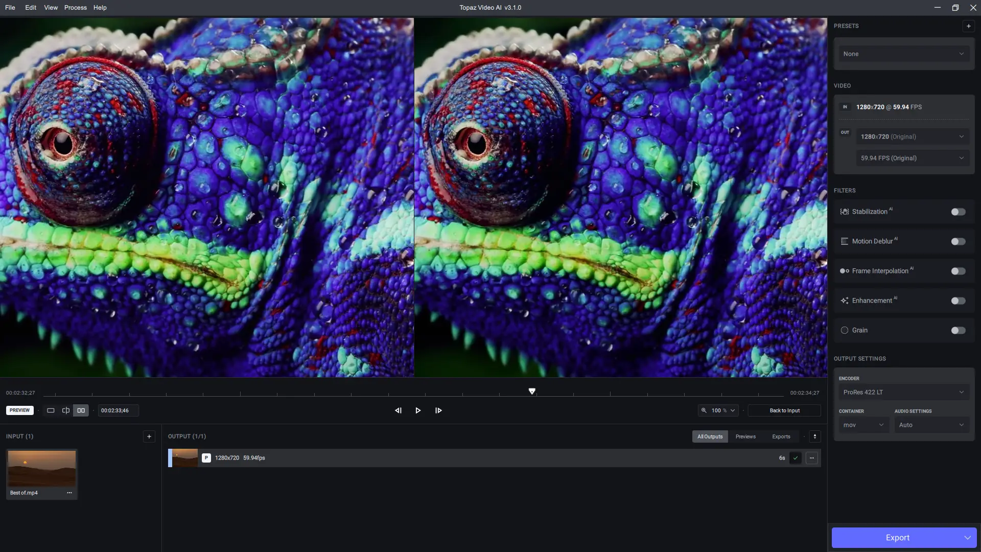 Работа с приложением организована интуитивно и не требует специальных знаний. Пользователь загружает видеофайл, выбирает нужный режим обработки — например, повышение резкости, устранение размытости движения или стабилизацию — и запускает рендеринг. Программа автоматически применяет соответствующие модели ИИ в зависимости от типа контента. Процесс можно контролировать через предварительный просмотр, который стал быстрее благодаря оптимизации в новых версиях. После завершения экспортируется готовое видео с улучшенным качеством, сохранённой цветопередачей и плавностью кадров.