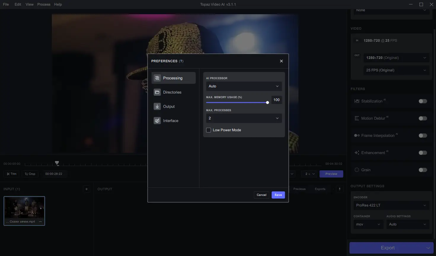 Работа с Topaz Video AI