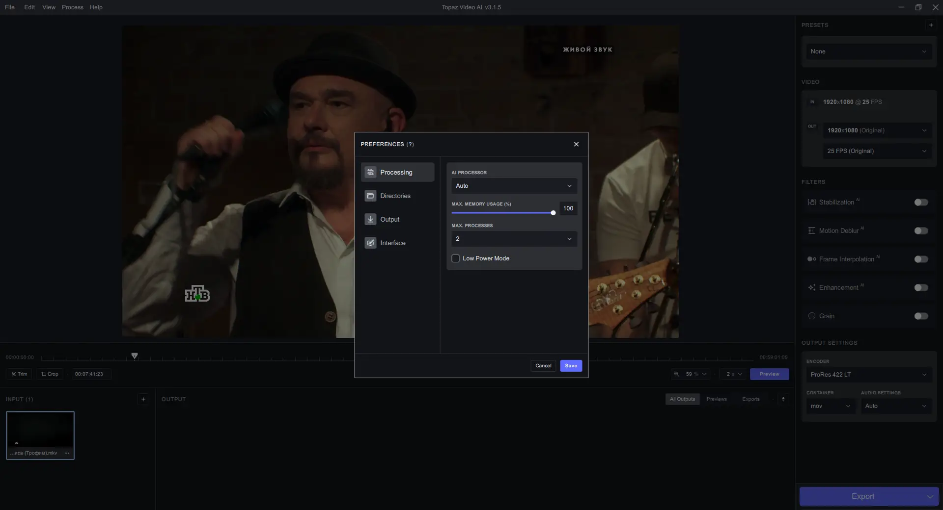 Работа с Topaz Video AI
