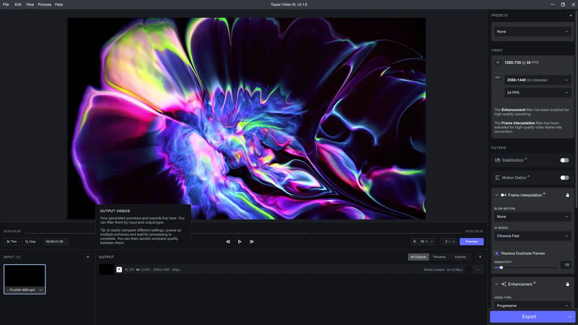 Работа с программой начинается с импорта исходного видеофайла в рабочую область. Далее пользователь выбирает нужную модель обработки — например, для шумоподавления, увеличения или стабилизации. После настройки целевого разрешения и формата вывода запускается процесс рендеринга, который может занимать разное время в зависимости от мощности системы и длительности ролика. Готовый результат можно сохранить в популярных форматах, пригодных для дальнейшего монтажа или публикации.