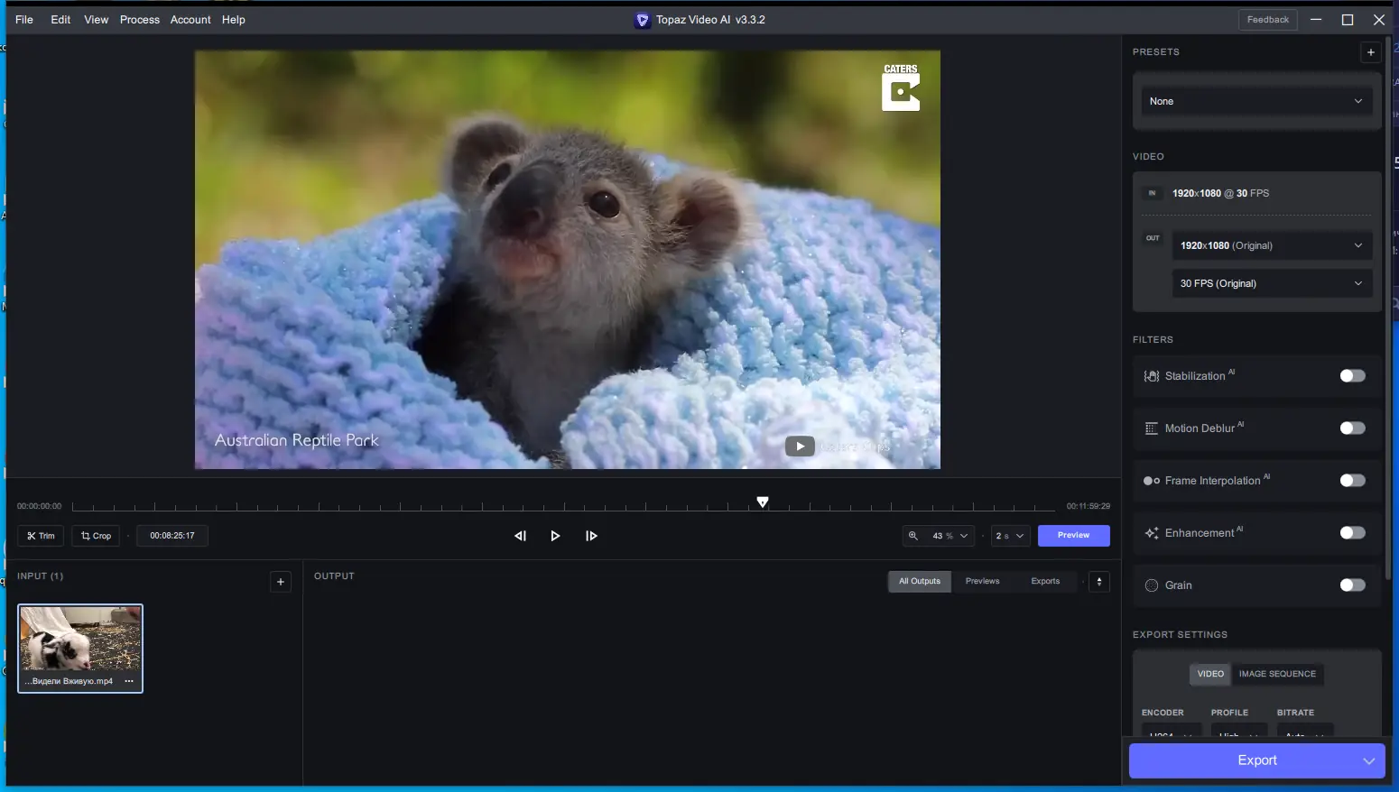 Работа с программой не требует глубоких технических знаний. После загрузки файла пользователь выбирает нужный режим обработки — увеличение, стабилизация или улучшение чёткости. Далее указывается целевое разрешение, формат вывода и профиль экспорта, например, ProRes Proxy. Программа автоматически проанализирует последовательность кадров, применит соответствующие модели ИИ и начнёт рендеринг. Процесс может занимать некоторое время в зависимости от длины видео и мощности системы, но интерфейс остаётся отзывчивым, а ход выполнения отслеживается в реальном времени. После завершения обработки результат можно сохранить в выбранной директории для дальнейшего использования в монтажных проектах или публикации.