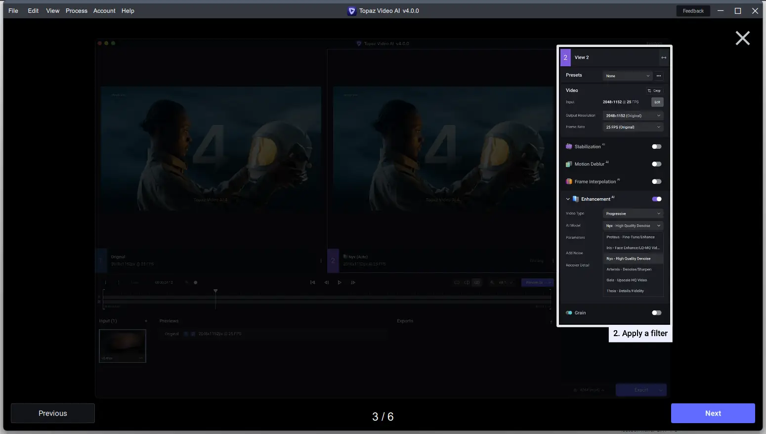 Topaz Video AI использует передовые алгоритмы машинного обучения для преобразования низкокачественного видео в чёткие и детализированные кадры высокого разрешения. Программа способна обрабатывать материалы с DVD, старые домашние фильмы, записи с цифровых камер и игровые видео, значительно улучшая их визуальное восприятие. Благодаря глубокому анализу последовательности кадров, она обеспечивает не просто масштабирование, а реалистичное воссоздание текстур, краёв и мелких элементов.