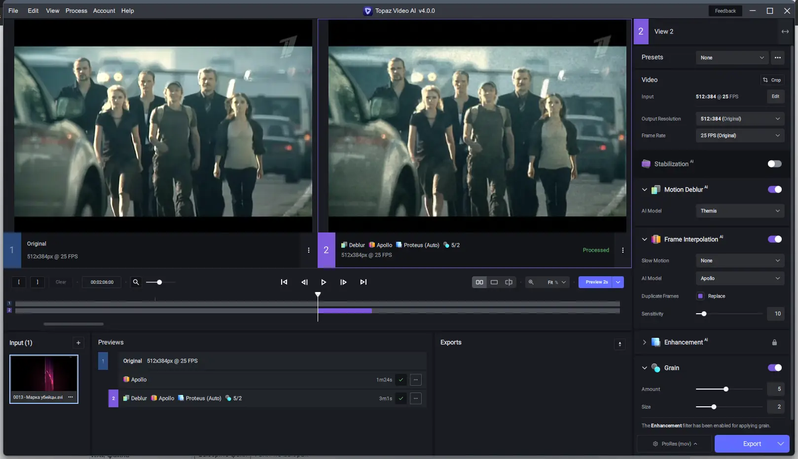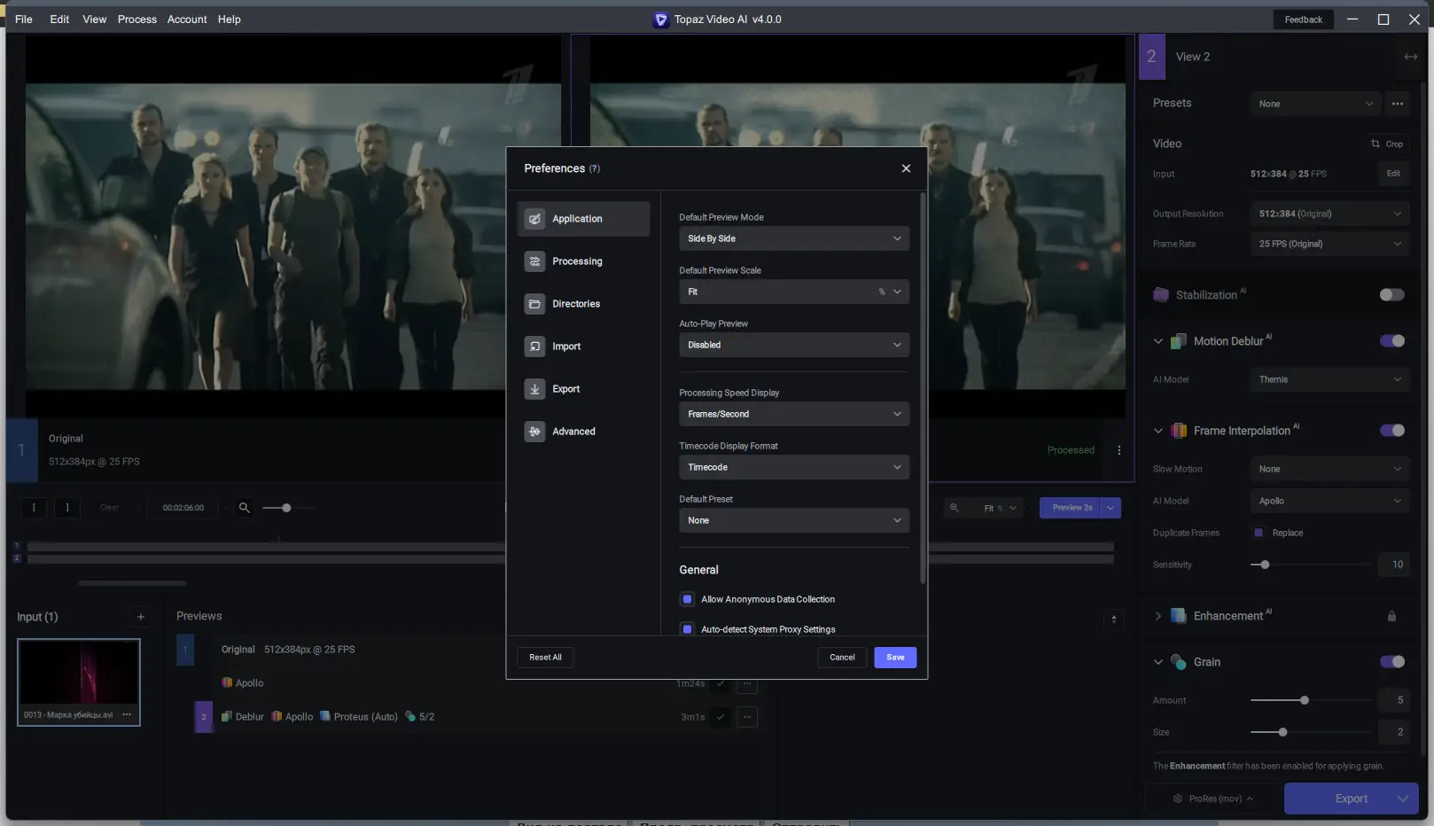 Программа демонстрирует высокую эффективность при работе с устаревшим контентом, превращая размытые и шумные записи в чёткие и детализированные видео. Благодаря оптимизированному движку, Topaz Video AI поддерживает обработку в 64-битном режиме и эффективно использует ресурсы видеокарты. Однако из-за сложности вычислений требуются мощные компьютеры с современным GPU для комфортной работы с длинными клипами. Также стоит отметить, что полная версия предлагает больше функций по сравнению с пробной.