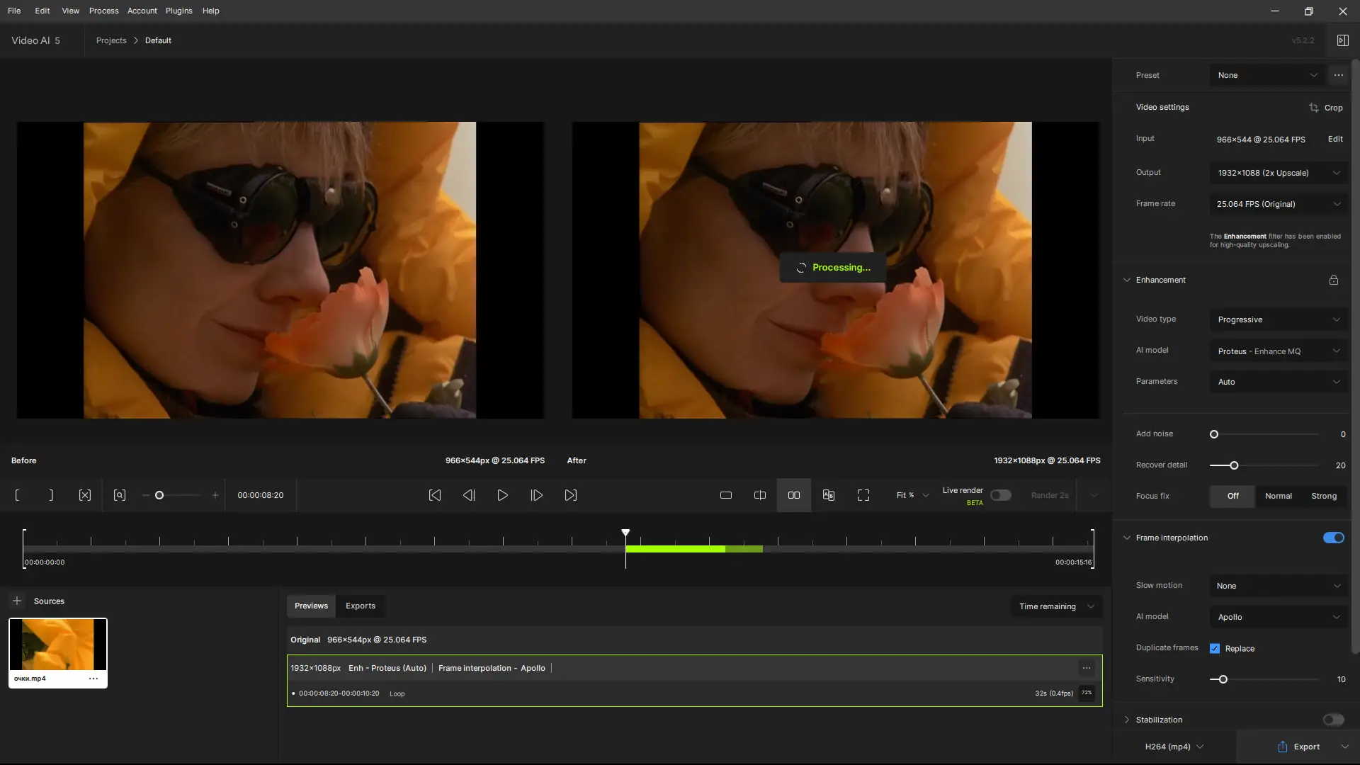 Использование программы начинается с импорта видеофайла в интерфейс. Далее пользователь выбирает нужный режим обработки — увеличение разрешения, стабилизация, уменьшение шума или комбинацию этих функций. Настройки можно корректировать в зависимости от исходного качества материала. После выбора параметров начинается процесс рендеринга, который занимает некоторое время в зависимости от длины ролика и мощности системы. Готовое видео экспортируется в выбранном формате с улучшенной чёткостью и детализацией. Процесс не требует вмешательства в настройки графического процессора или сложных ручных коррекций.