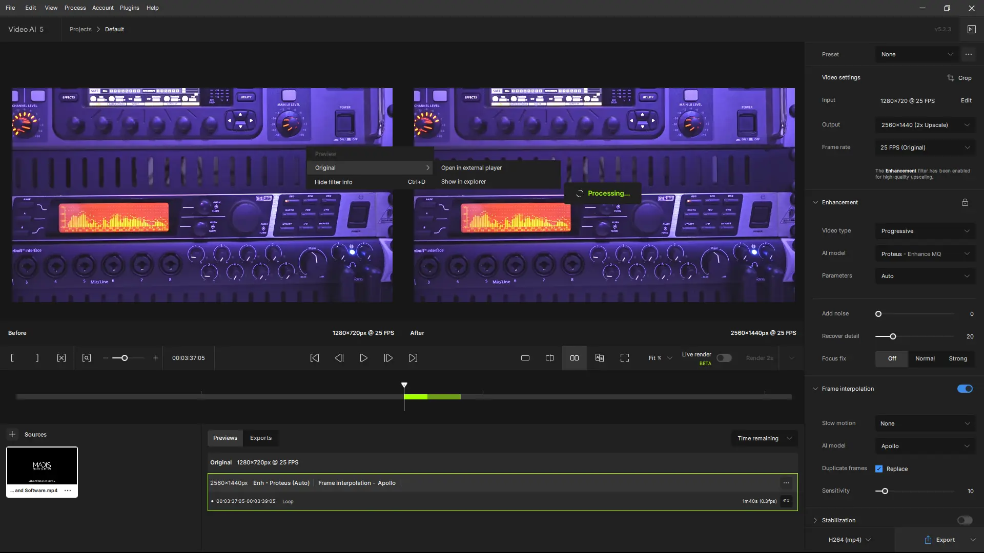 Работа с Topaz Video AI