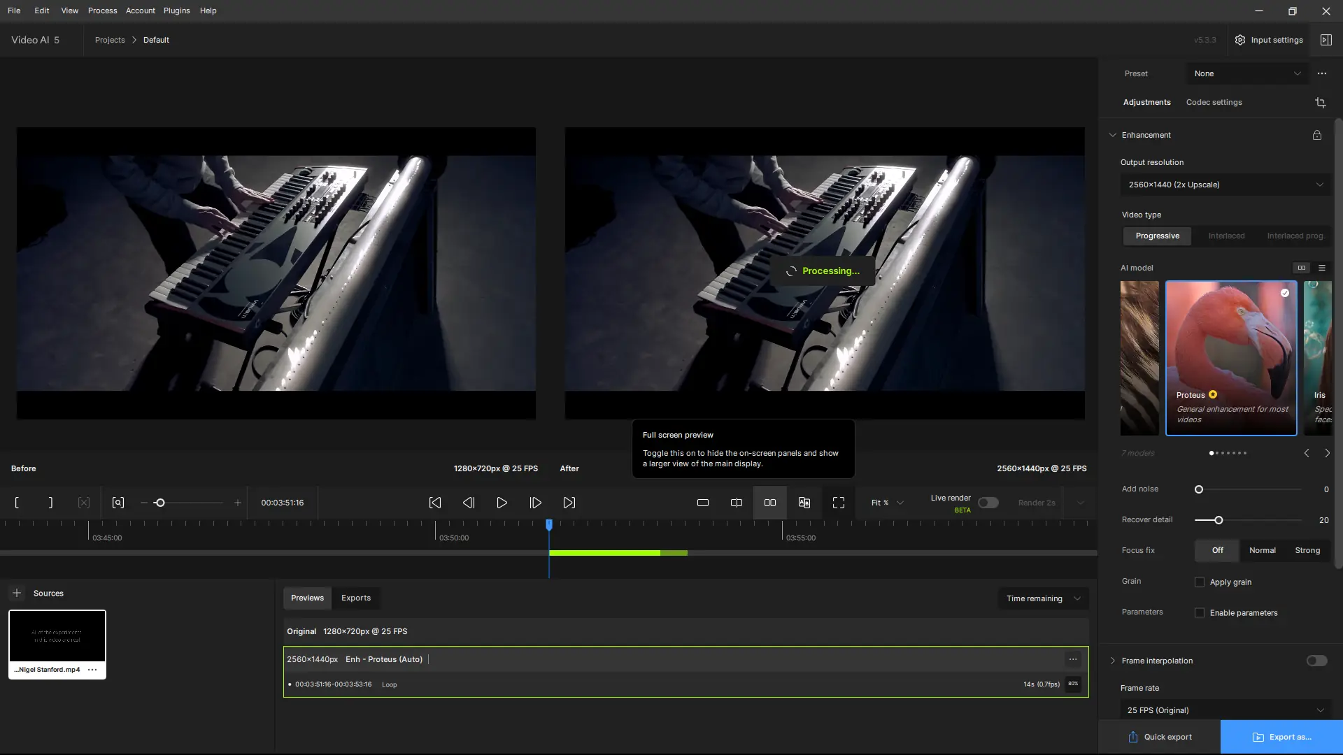 Использование программы не требует специальных навыков. После загрузки файла пользователь выбирает целевое разрешение, тип модели обработки и параметры рендеринга. Программа автоматически анализирует видеопоток, применяет соответствующие алгоритмы ИИ и формирует итоговый результат. Процесс может занять некоторое время в зависимости от длины видео и производительности системы, но результат оправдывает ожидания. Поддерживаются популярные форматы, включая MP4, AVI, MOV и другие, что делает инструмент универсальным для разных задач.