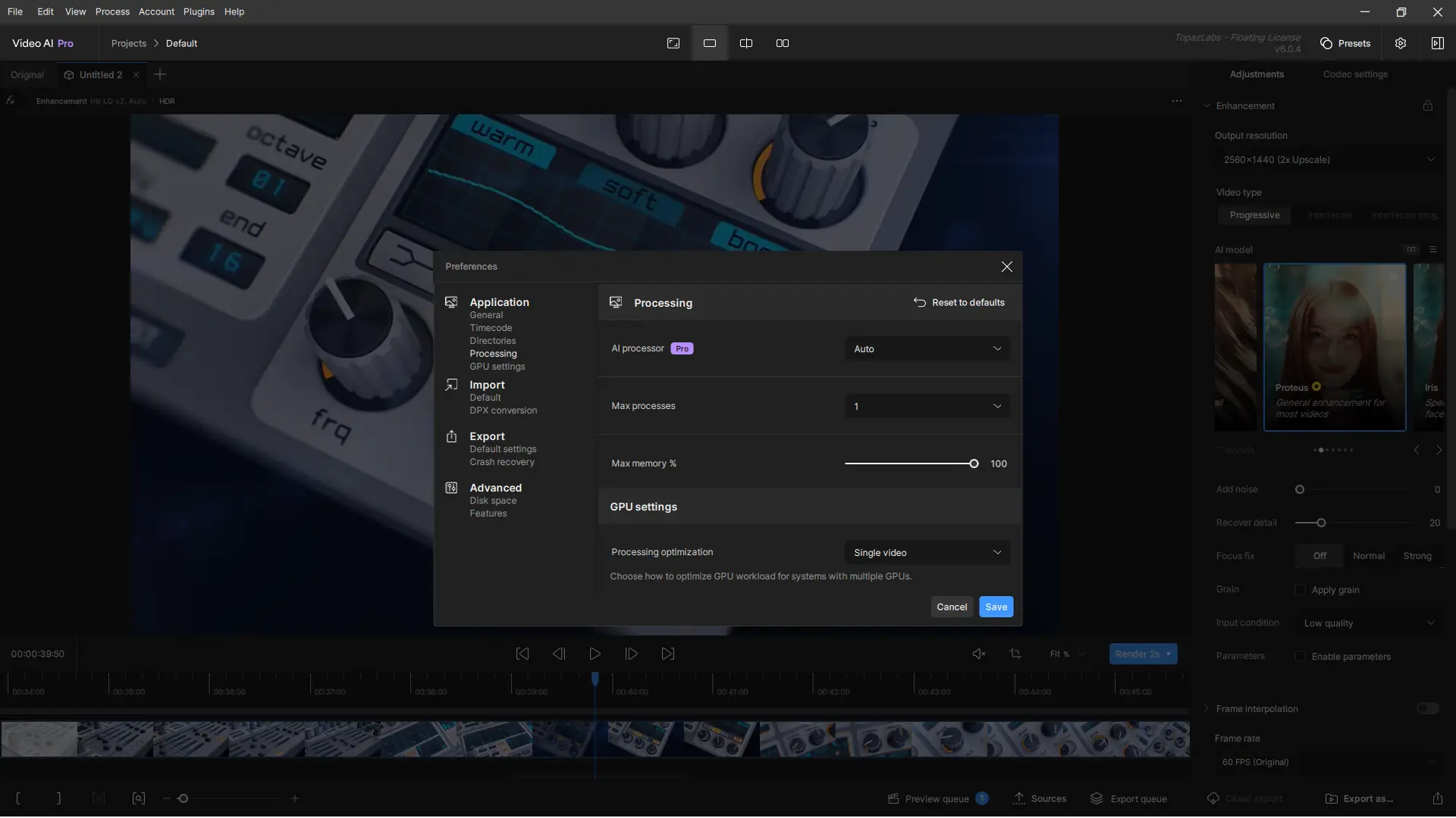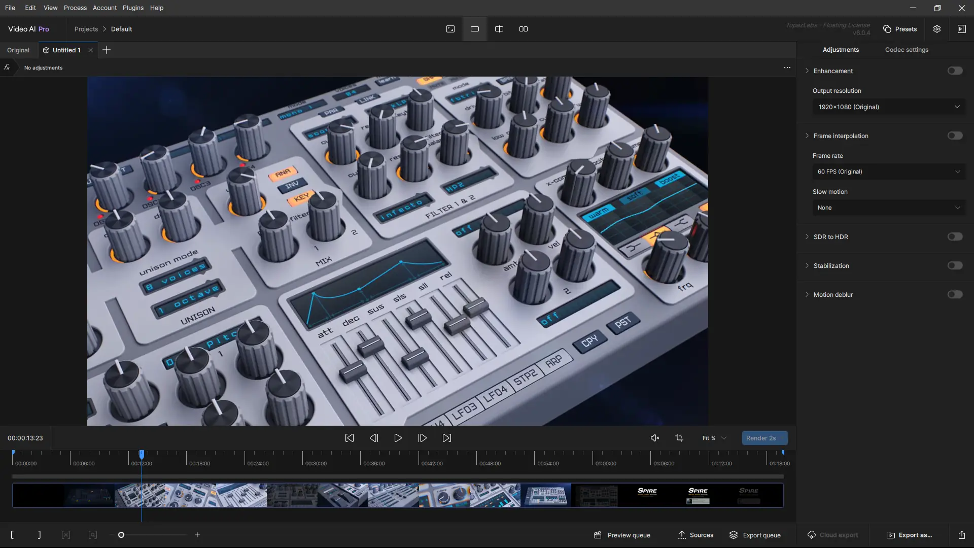 Работа с программой начинается с импорта исходного видеофайла, после чего пользователь выбирает нужный режим обработки — увеличение, стабилизация или улучшение чёткости. Интерфейс разделён на вкладки, где можно настраивать параметры для разных фрагментов или применять предустановки. Встроенная система предпросмотра позволяет в реальном времени сравнивать оригинальный и обработанный кадры в режиме «рядом» или «разделённый экран». После настройки параметров запускается рендеринг, который можно отслеживать через обновлённую очередь экспорта с детальной информацией о прогрессе и статусе задач.