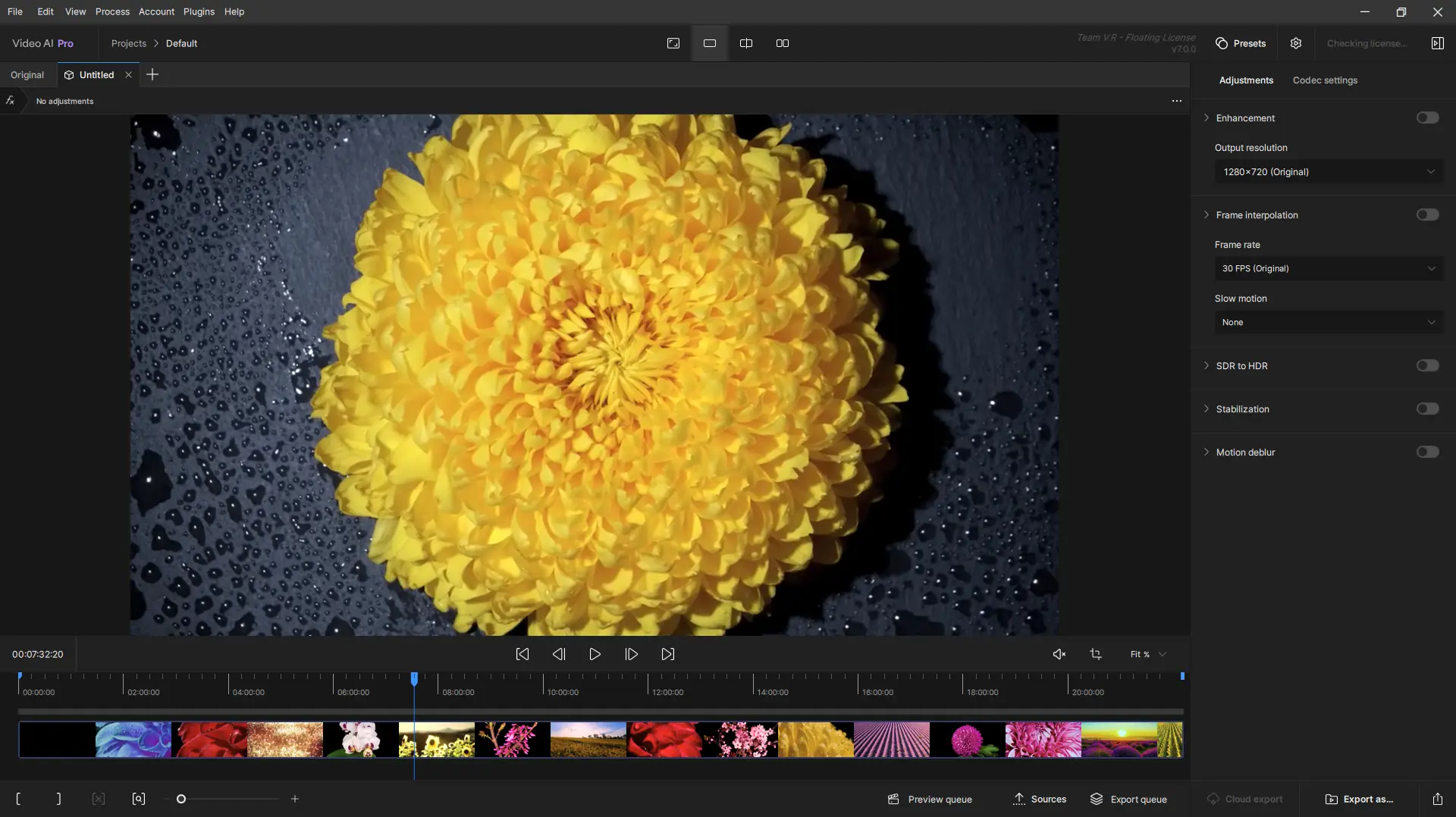 Работа с программой не требует сложной настройки или специальных знаний. После запуска интерфейс предлагает загрузить видеофайл, выбрать модель обработки и задать целевое разрешение. Пользователь может настроить параметры стабилизации, шумоподавления и резкости в зависимости от исходного качества. После установки параметров начинается процесс рендеринга, который проходит в фоновом режиме с отображением прогресса. Готовое видео экспортируется в выбранный формат с сохранением исходной частоты кадров и пропорций. Для упрощения интеграции доступен плагин OFX, который можно подключить к таким платформам, как Adobe Premiere Pro или DaVinci Resolve. Это особенно полезно при работе над монтажными проектами, где важна точность и совместимость.
