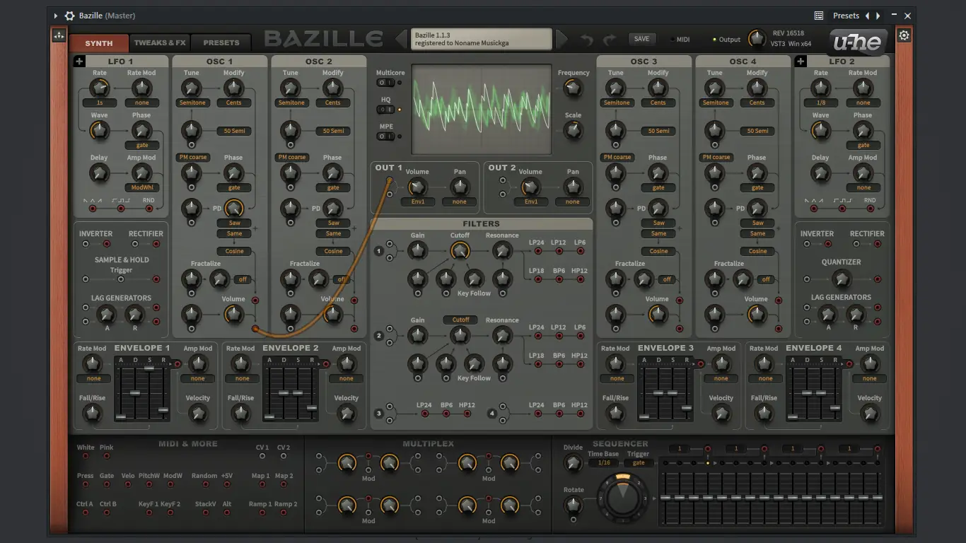 Работа с u-he Bazille начинается с выбора или создания нового патча, где пользователь может подключать различные модули через виртуальные кабели. Интерфейс построен по принципу модульного синтеза, где каждый блок выполняет свою функцию — от генерации сигнала до его фильтрации и модуляции. После настройки соединений можно регулировать параметры в реальном времени, используя слайдеры, ручки и матрицу модуляции, при этом изменения сразу отражаются на звуке. Сохранённые патчи можно использовать в цифровых аудиостудиях, интегрируя их в проекты через VST или AU-плагины.