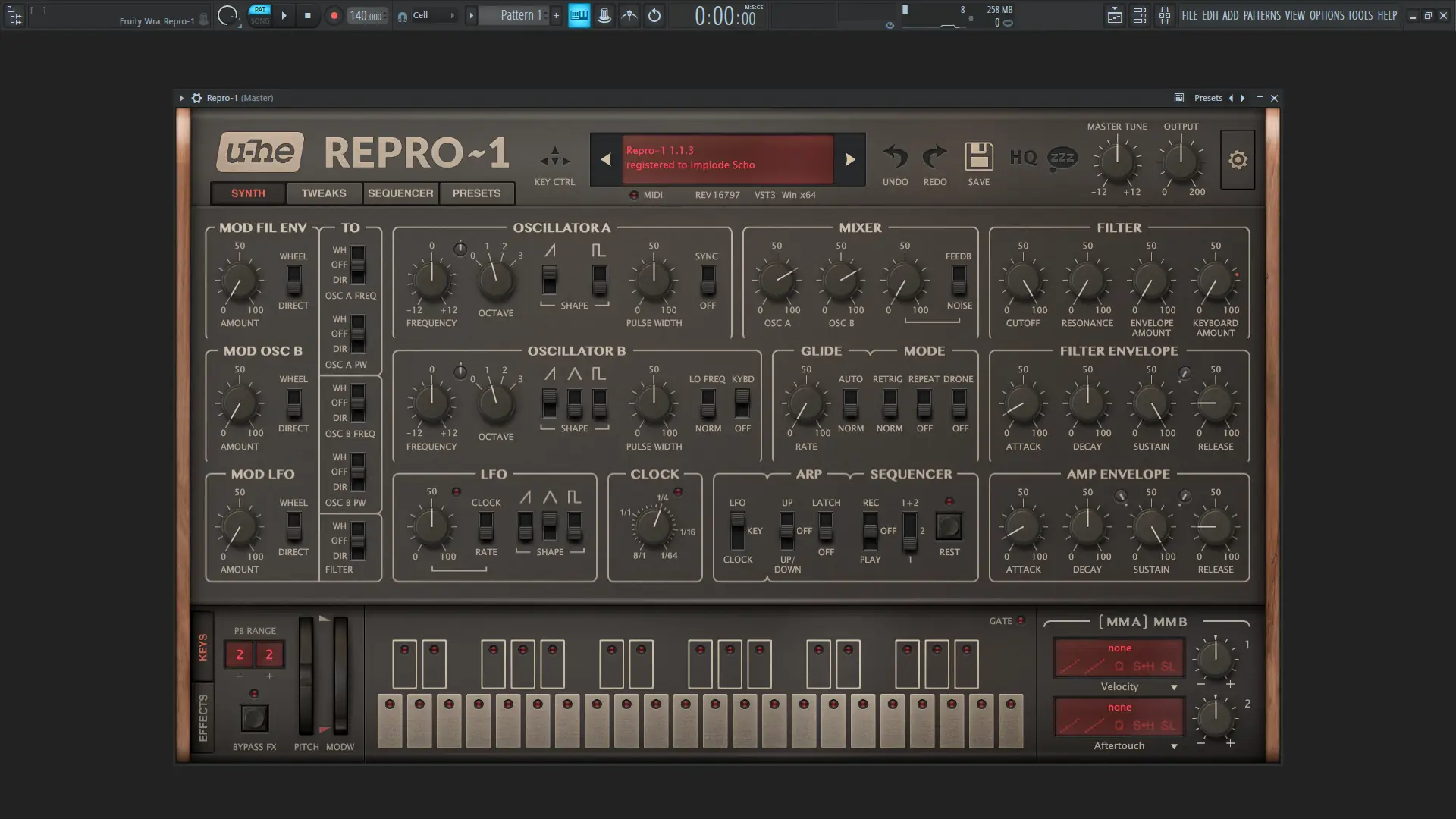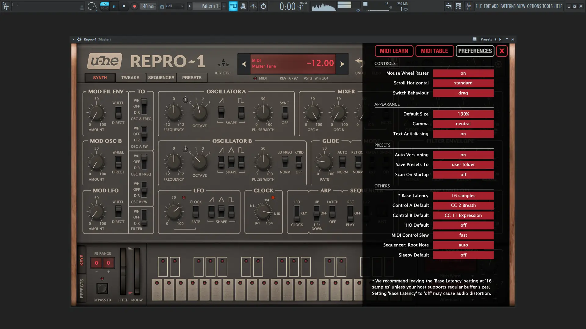 Интерфейс Repro-1 интуитивно понятен и стилистически повторяет оригинальный аппарат, что упрощает навигацию даже новичкам. Все параметры вынесены на переднюю панель, обеспечивая быстрый доступ к осцилляторам, фильтрам, огибающим и эффектам. Арпеджиатор и секвенсор интегрированы напрямую в интерфейс, позволяя создавать сложные последовательности без использования внешних инструментов. Секвенсор поддерживает настройку высоты нот, силы извлечения звука, изменение статуса MIDI-событий на каждом шаге, а также функции копирования, вставки, изменения направления воспроизведения. Работа с пресетами упрощена: доступно 500 заранее созданных патчей, которые можно сохранять, редактировать и загружать в любой момент. Эффекты, такие как дисторшн, дилэй, хорус, эквалайзер, резонатор, реверберация и динамический процессор, встроены прямо в плагин, что позволяет обрабатывать звук без подключения дополнительных процессоров.