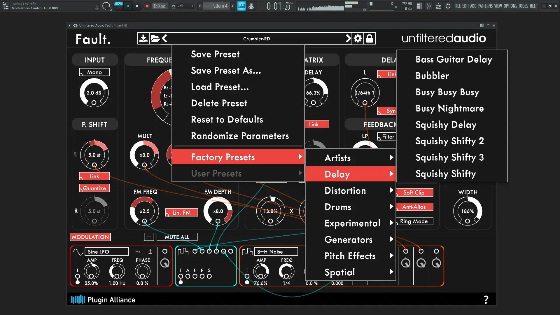 Работа с Unfiltered Audio Fault начинается с загрузки плагина в DAW как VST3, VST2 или AAX-модуля. После запуска доступен выбор одного из пресетов или создание нового патча с нуля. Основные параметры, такие как сдвиг высоты тона, модуляция и стереоширина, управляются через интуитивно понятный графический интерфейс. Каждый из восьми модуляторов можно назначить на нужный параметр с помощью перетаскивания, что ускоряет процесс настройки. Для вокальных дорожек эффективно использовать комбинацию LFO и follower для создания эффекта автоматического двойного трекинга. Барабанные треки обогащаются за счёт субоктавных сдвигов и кольцевой модуляции, особенно при обработке комнатных микрофонов. Поддержка ROLI Lightpad позволяет управлять параметрами в реальном времени с помощью тактильного интерфейса.