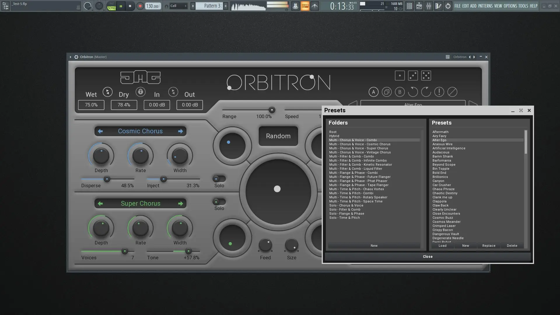 Использование Orbitron интуитивно понятно благодаря продуманному интерфейсу и логичной структуре управления. После загрузки плагина в DAW, пользователь может начать с выбора режима для каждой из четырёх секций, определив, будут ли они одинаковыми для плотного эффекта или различными для сложного наложения. Центральный регулятор позволяет вручную задавать позицию микса между секциями, либо передать управление автоматике — синхронной, случайной или модулируемой по LFO. Регулятор обратной связи и задержки помогает формировать глубину эффекта, а наличие пресетов ускоряет начало работы. Категории пресетов включают «Solo», где активна только одна секция, «Multi» с комбинацией однотипных эффектов и «Hybrid» — для смешивания совершенно разных звуковых преобразований.