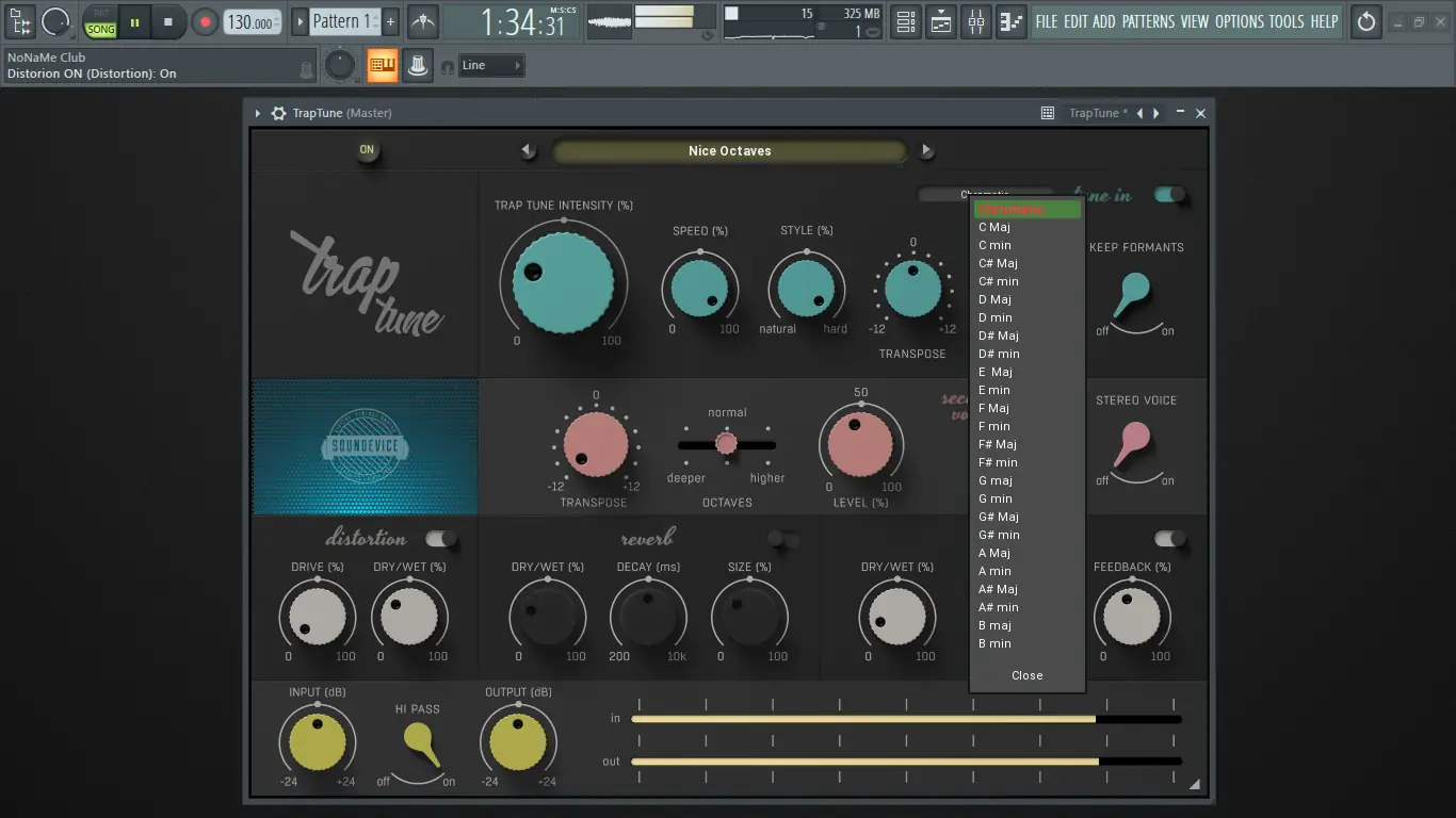 Программа TrapTune представляет собой мощный инструмент для обработки вокала, ориентированный на современные жанры, такие как трэп, хип-хоп, поп и электронная музыка. Благодаря продуманной архитектуре, она позволяет мгновенно настроить высоту тона, добавить гармонии, искажения и пространственные эффекты. Основное ядро обработки сосредоточено в секции Tune-in, где регулируется интенсивность коррекции, скорость реакции и характер звучания.