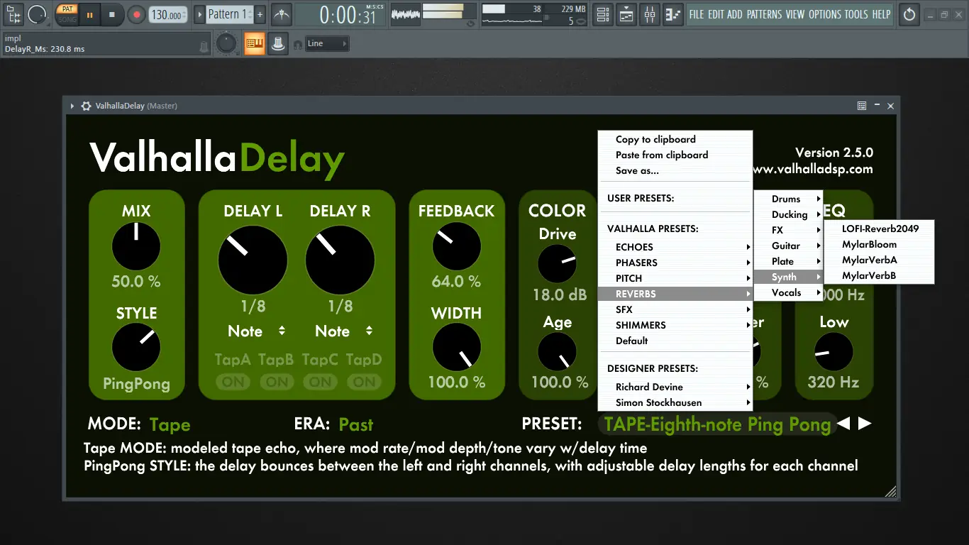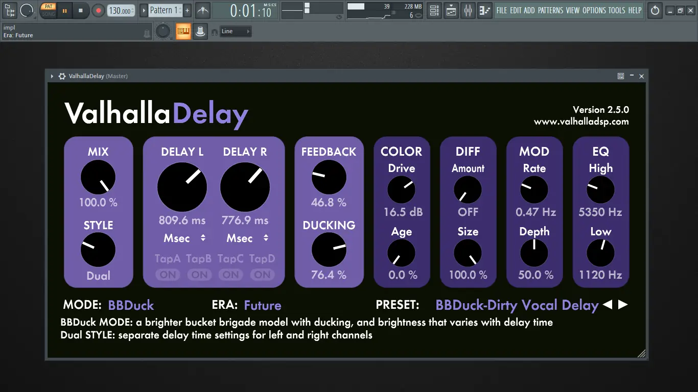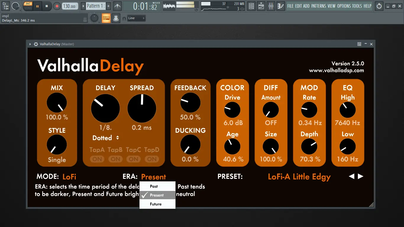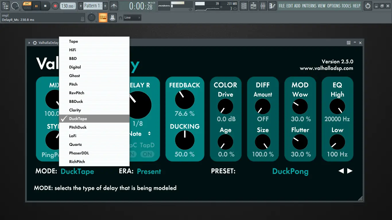 Работа с Valhalla Delay