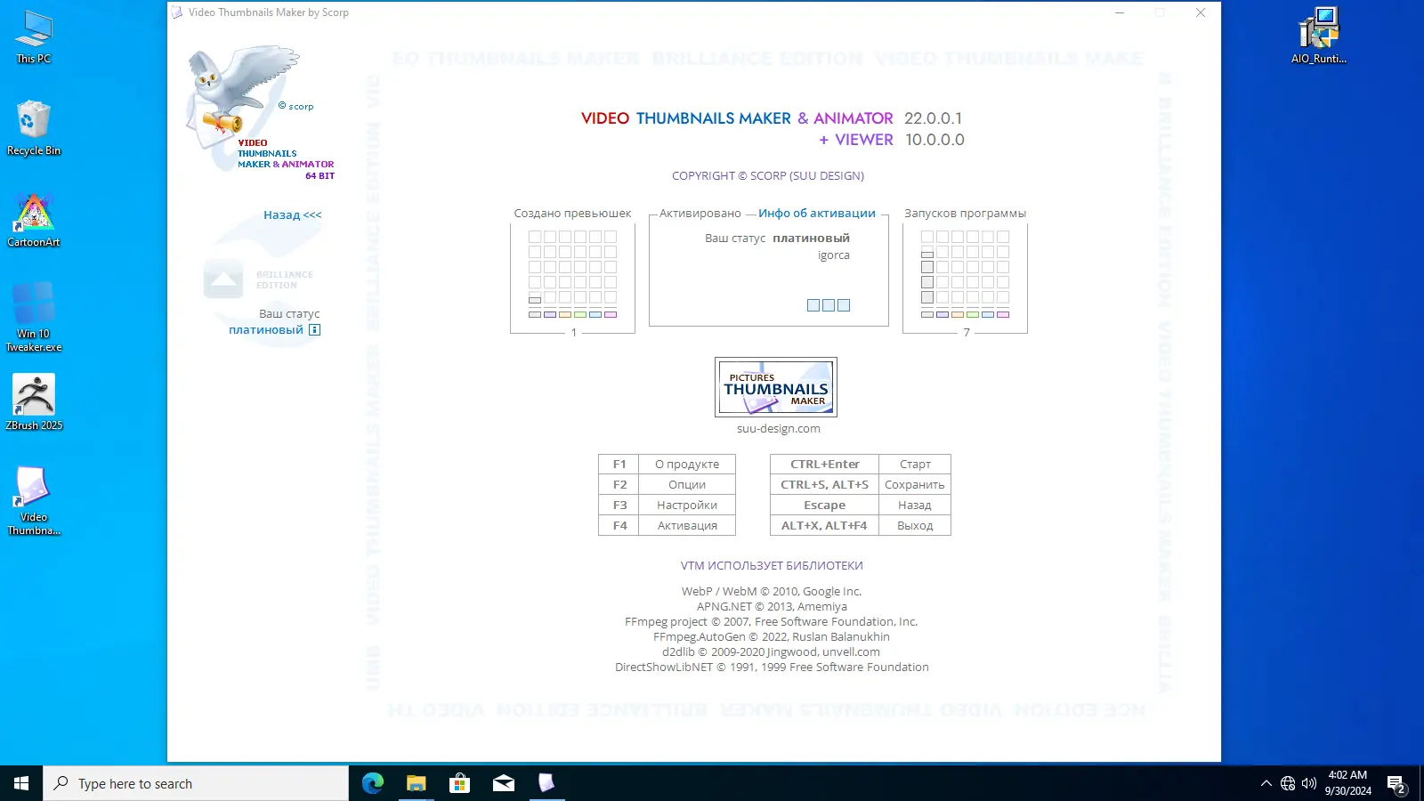 Обновлённая версия Video Thumbnails Maker v22.0.0.1 включает косметические улучшения и обновления компонентов. В составе поставки — обновлённый просмотрщик изображений Pictures Thumbnails Viewer 10.0.0.0 с аппаратным ускорением воспроизведения анимаций, новыми опциями отображения счётчика файлов и скрытия информационной панели. Устранены проблемы с воспроизведением анимаций, что повышает стабильность работы. Программа by scorp остаётся надёжным решением для создания качественных миниатюр с видео.