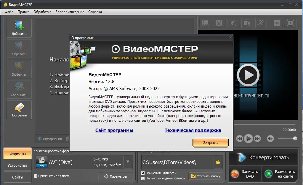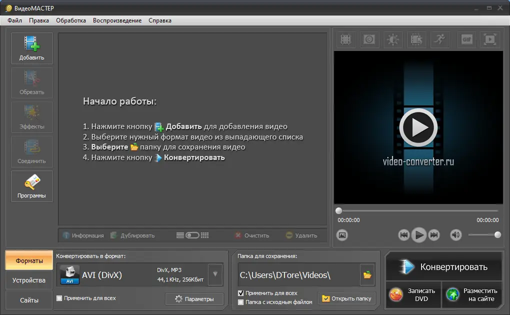 ВидеоМАСТЕР объединяет в себе функции конвертера, редактора и DVD-записывающего инструмента, что делает его незаменимым помощником при работе с видеоматериалами.