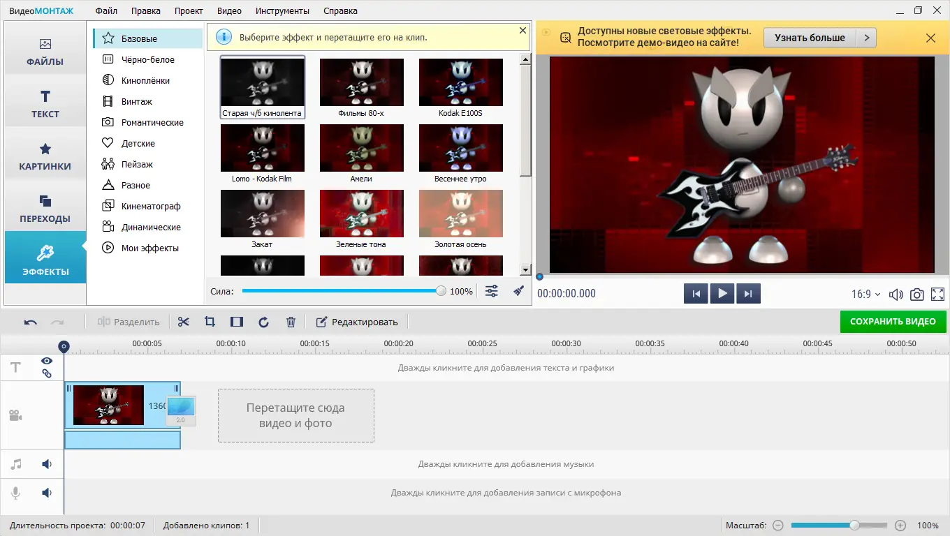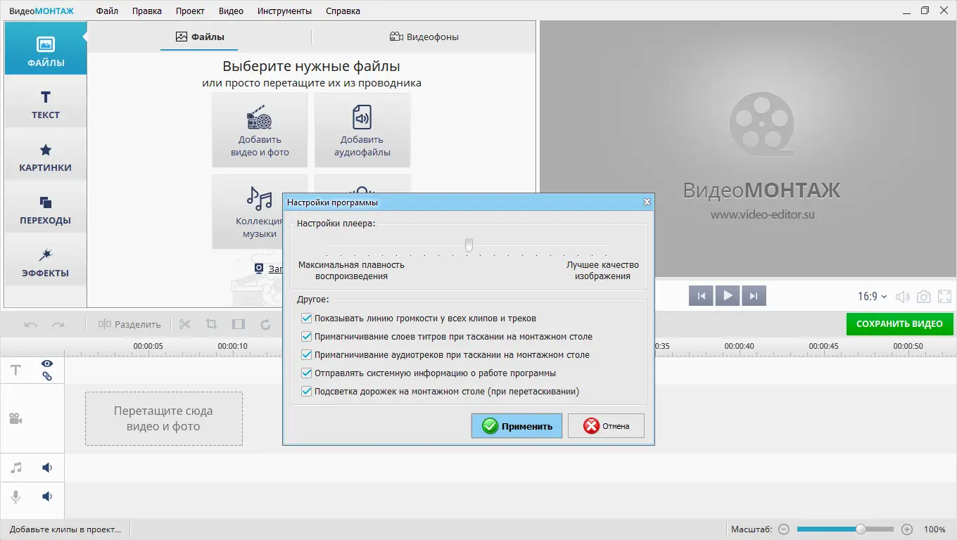 ВидеоМОНТАЖ объединяет функциональность профессионального редактора и простоту домашнего приложения.