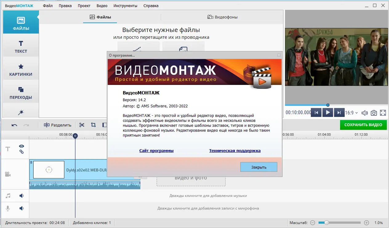 ВидеоМОНТАЖ сочетает в себе простоту и функциональность, делая процесс редактирования доступным даже для тех, кто впервые работает с видеомонтажом.