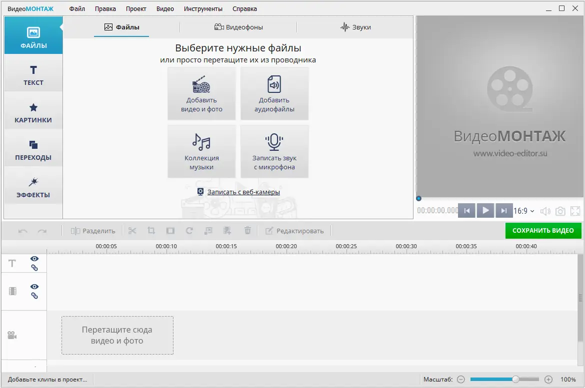 ВидеоМОНТАЖ — это простой в использовании видеоредактор, позволяющий быстро создавать качественные видеоролики из фото, видеофрагментов и музыки. Программа подходит как для новичков, так и для пользователей с минимальным опытом монтажа, обеспечивая интуитивный интерфейс и набор готовых шаблонов для быстрого старта.