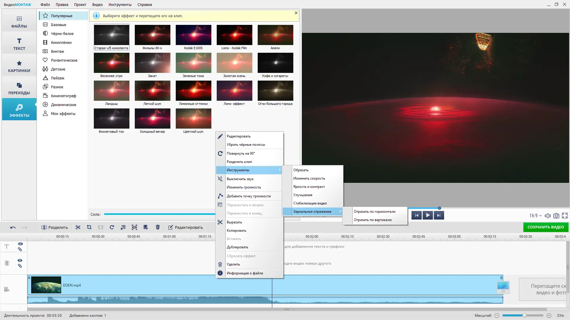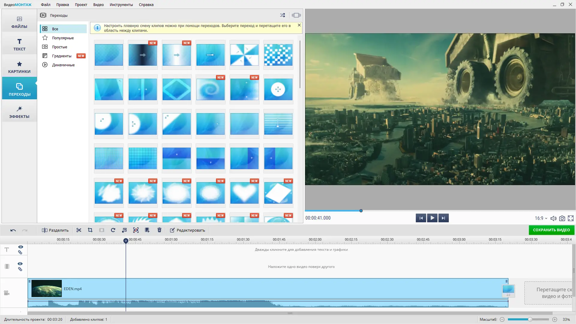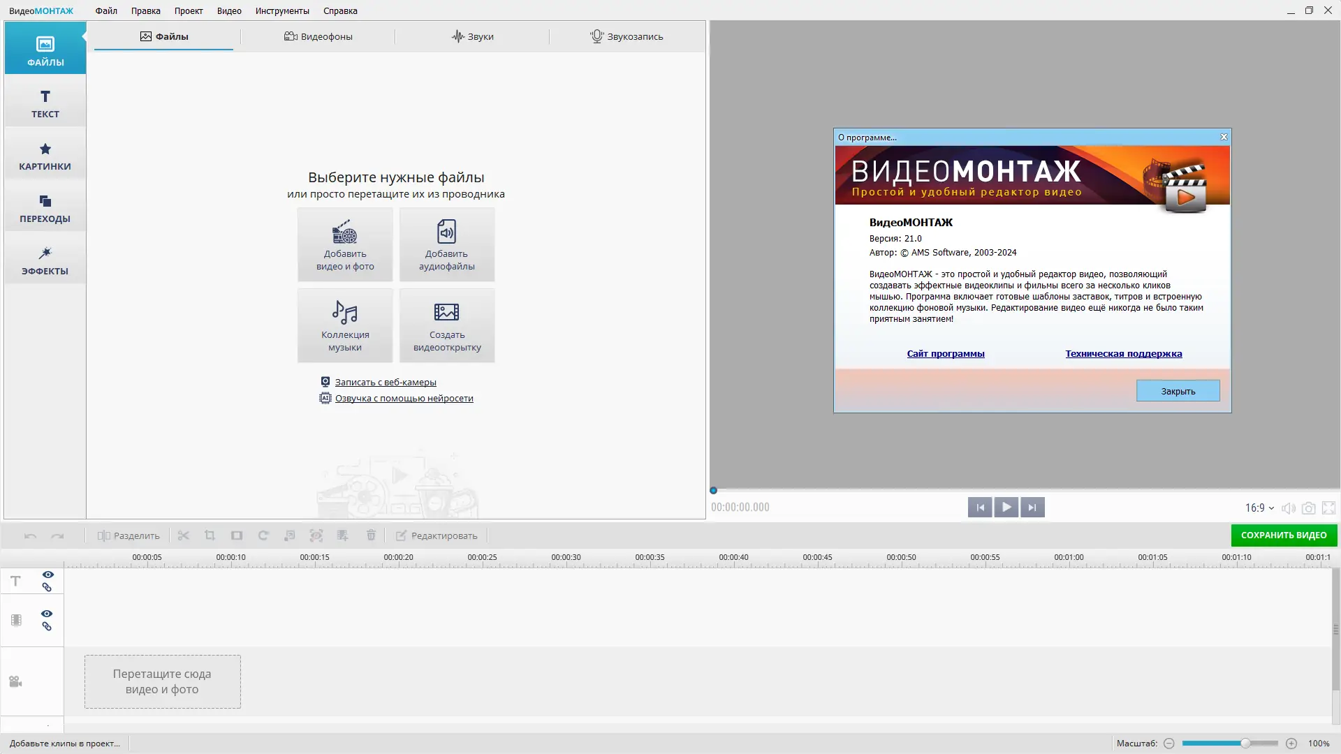 ВидеоМОНТАЖ сочетает в себе простоту использования и широкие возможности для творческого монтажа.