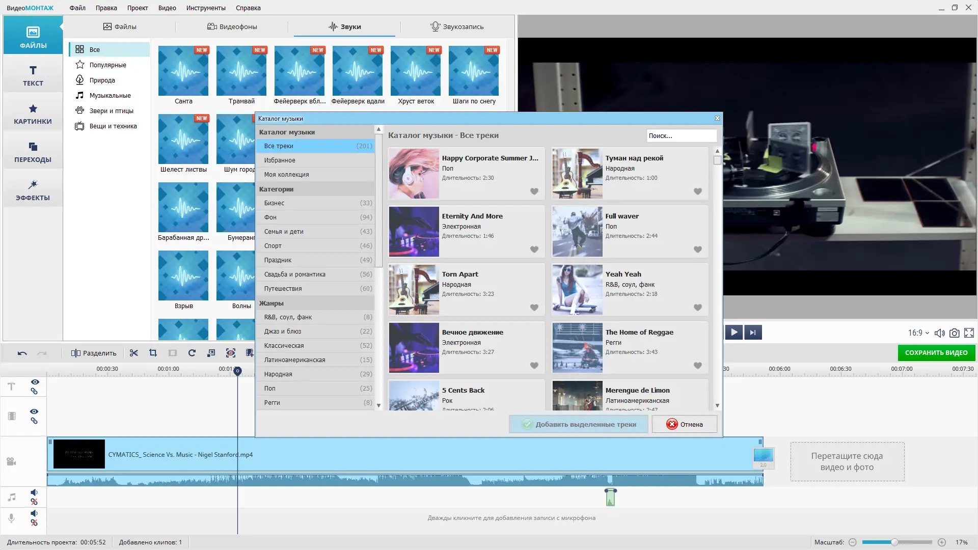 ВидеоМОНТАЖ демонстрирует высокий уровень функциональности при минимальных требованиях к навыкам пользователя. Программа для а видеомонтажа предлагает всё необходимое для создания законченного продукта — от базового редактирования до публикации в сети. Благодаря встроенным шаблонам меню и профилям экспорта, даже новичок может записать DVD или загрузить ролик на YouTube без дополнительных инструментов. В комплекте также идут футажи для а динамичных заставок и музыка для а фонового сопровождения, что значительно упрощает процесс оформления.