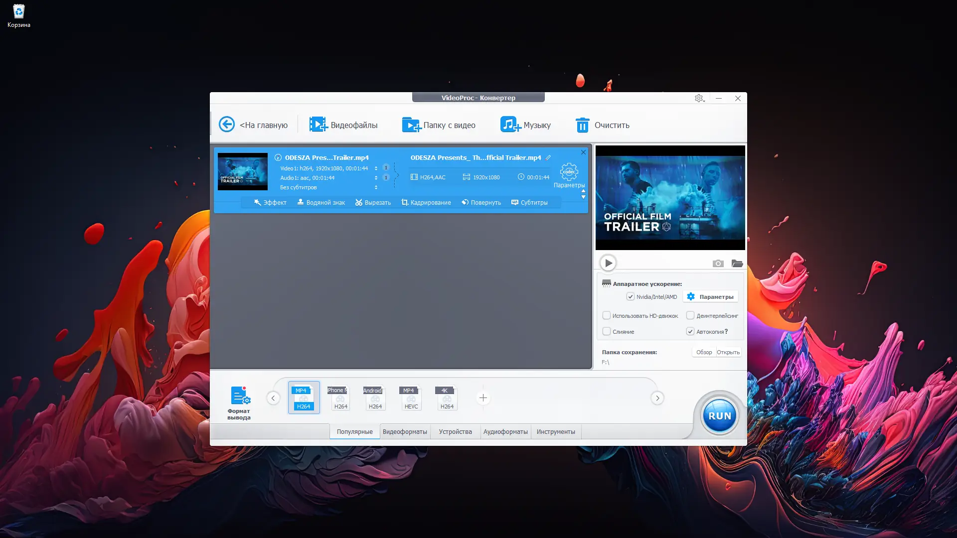 - Конвертирует видео в более чем 370 форматов, включая MP4, AVI, MKV, MOV, FLV и другие