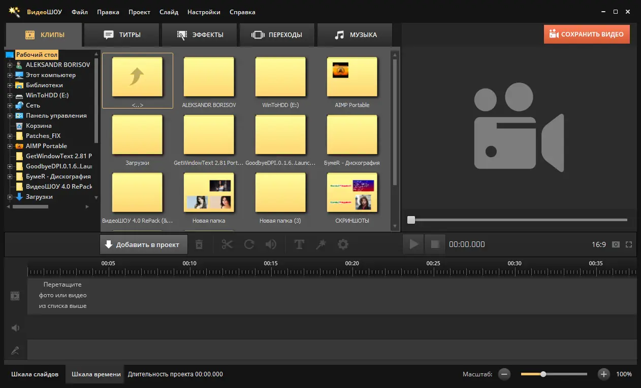 ВидеоШОУ — простой и мощный видеоредактор на русском языке, позволяющий создавать профессиональные видео без необходимости изучать сложные инструменты. Программа предлагает готовые шаблоны, эффекты, переходы и титры, а также поддержку множества форматов для экспорта. Идеальное решение для домашнего монтажа, презентаций, семейных фильмов и контента для соцсетей.