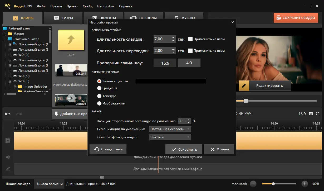 Работа с ВидеоШОУ