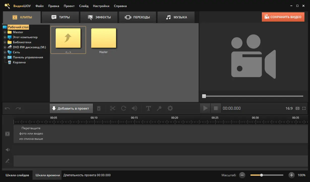 ВидеоШОУ — это программное обеспечение для создания и редактирования видеоконтента, ориентированное на пользователей, которые ценят простоту и эффективность. Интерфейс полностью адаптирован под русскоязычную аудиторию, что делает процесс обучения максимально быстрым и понятным. Встроенные шаблоны, эффекты и пресеты позволяют за считанные минуты превратить обычные фото и видео в полноценный фильм.