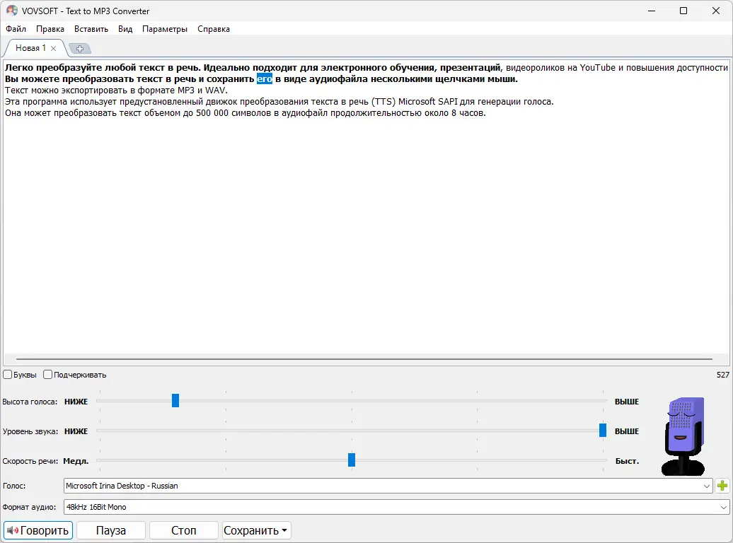 Работа с Vovsoft Text to MP3 Converter