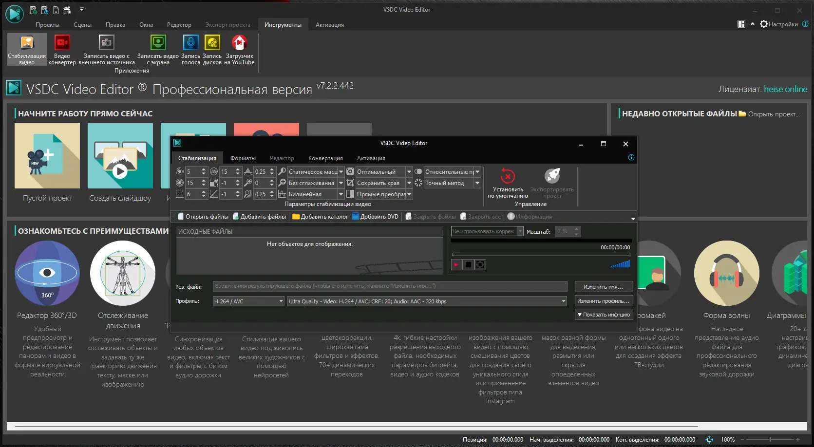 VSDC Video Editor — это мощный видеоредактор с продвинутыми функциями нелинейного монтажа, рассчитанный на пользователей разного уровня. Программа сочетает профессиональные инструменты и низкие требования к железу, позволяя работать с 4K, эффектами и цветокоррекцией даже на слабых ПК. Поддержка аппаратного ускорения, режимов наложения и искусственного интеллекта делает её универсальным решением для создания качественного контента.