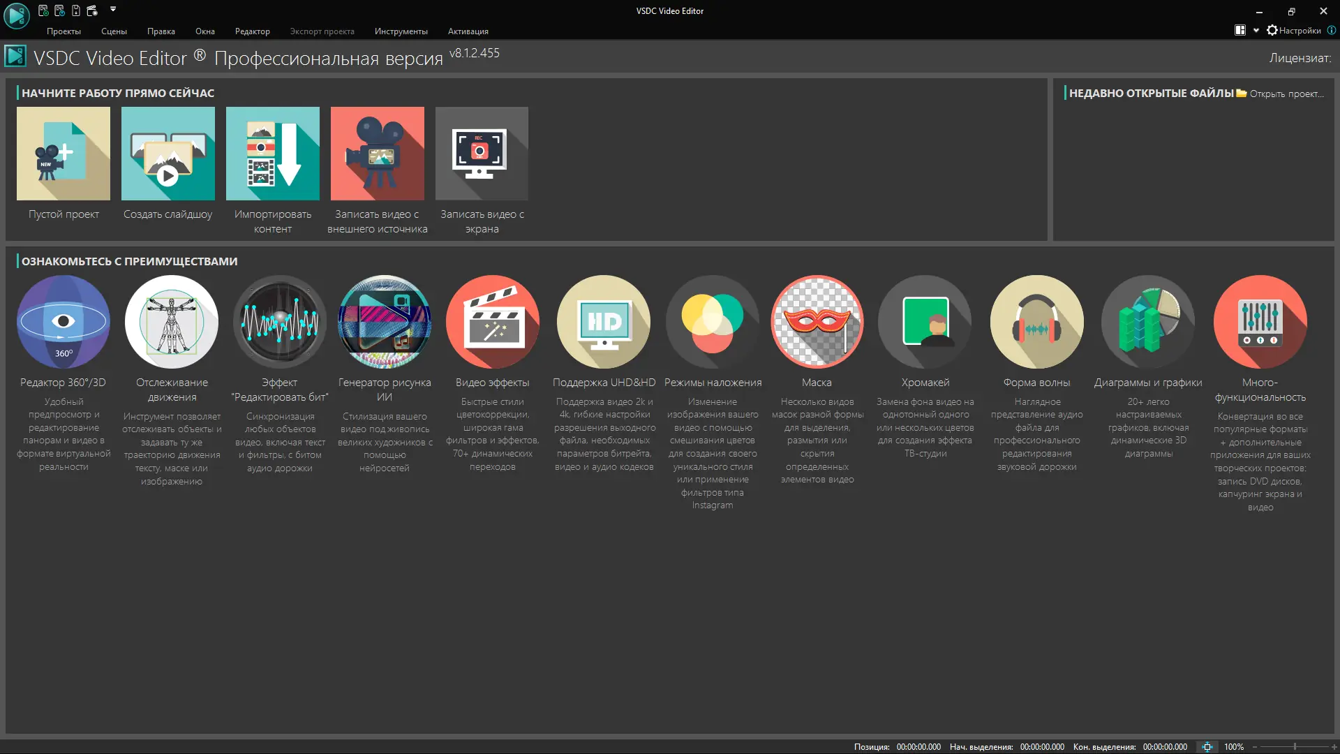 Профессиональный видеоредактор с широким набором инструментов и низкими системными требованиями — VSDC Video Editor Pro. Подходит для монтажа, цветокоррекции, моушн трекинга и работы с 360° видео. Доступен в портативной версии с поддержкой русского языка и возможностью бесплатного использования.