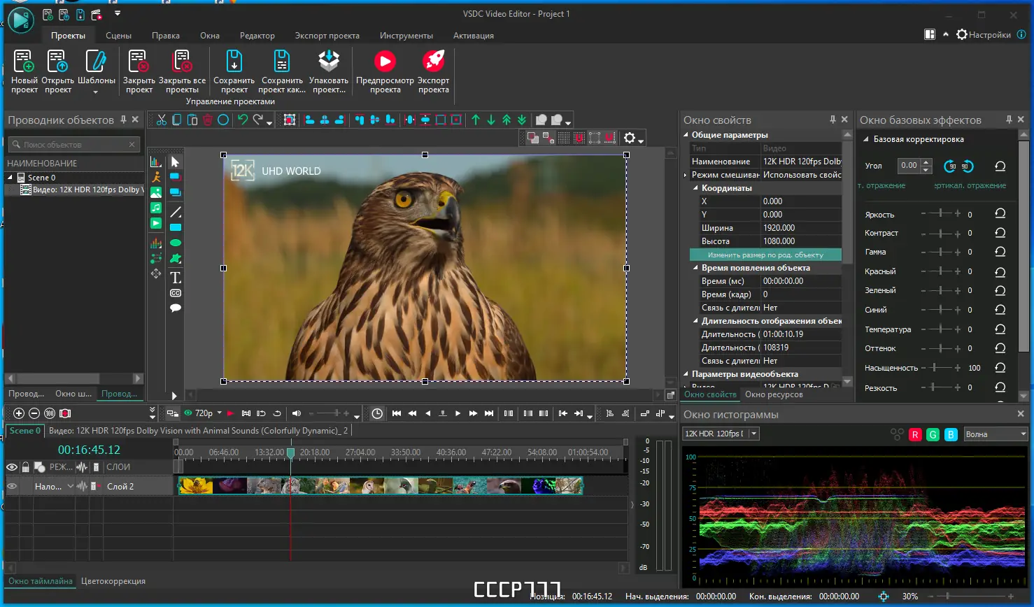 VSDC Video Editor выделяется на фоне конкурентов сочетанием высокой производительности и богатого функционала. Программа поддерживает аппаратное ускорение, что особенно важно при работе с объёмными проектами. Расширенные инструменты, такие как кривые Безье, анимация текста и эффект «вода» с точками обслуживания, позволяют создавать сложные визуальные решения. В то же время, интерфейс может потребовать времени на освоение для новичков.