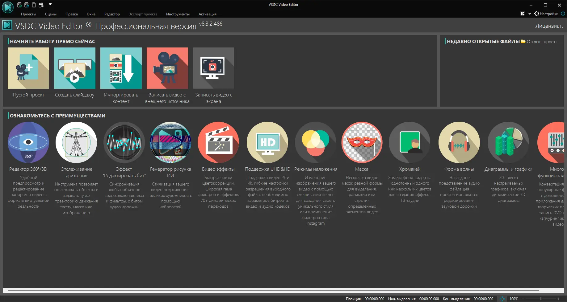 VSDC Video Editor — это многофункциональное приложение для обработки видеоматериалов, разработанное с учётом потребностей современных создателей контента. Программа поддерживает широкий спектр форматов и предлагает инструменты уровня pro, позволяя реализовывать сложные визуальные идеи без необходимости использовать ресурсоёмкие аналоги. Работа ведётся на нелинейной временной шкале, что обеспечивает гибкость при компоновке сцен и наложении эффектов.