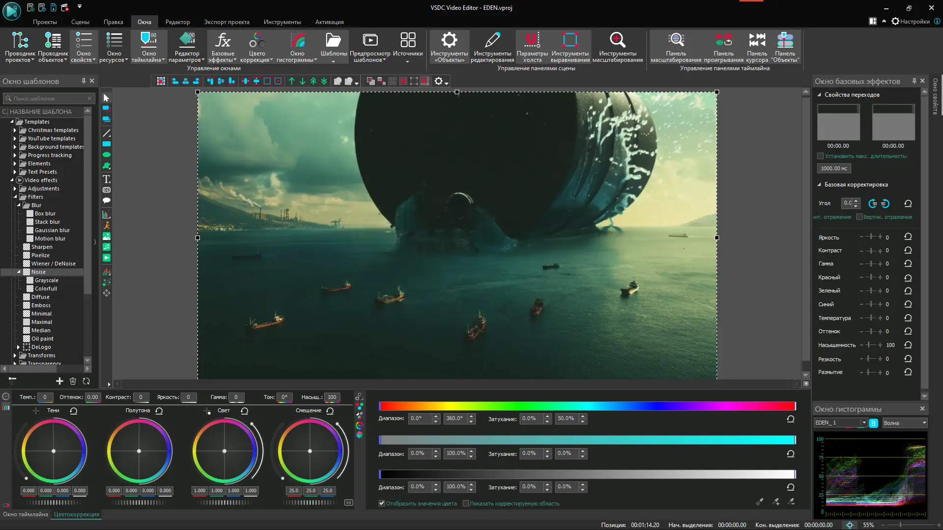 VSDC Video Editor — это не просто редактор, а полноценная студия для создания и обработки видео на компьютере. Программа поддерживает широкий спектр форматов, включая MP4, AVI, MKV, MOV и другие, а также работает с 360°-видео и 4K-контентом. В ней реализованы продвинутые функции, такие как HSL Chroma Key, нелинейные параметры эффектов и аппаратное ускорение, что делает монтаж более точным и производительным. Пользователи получают доступ к инструментам уровня pro, включая генератор рисунка на основе искусственного интеллекта и эффект трансформации потока.